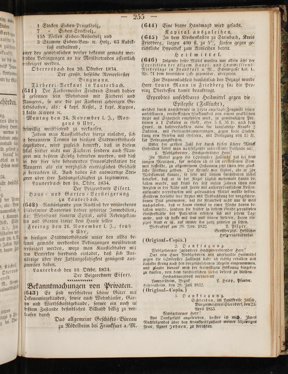 Intelligenzblatt für die Provinz Oberhessen. 1834-1834