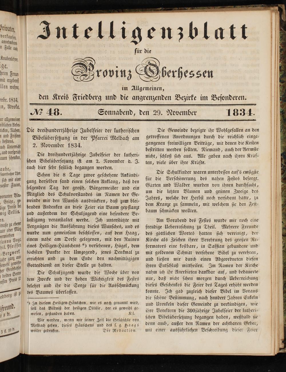 Intelligenzblatt für die Provinz Oberhessen. 1834-1834