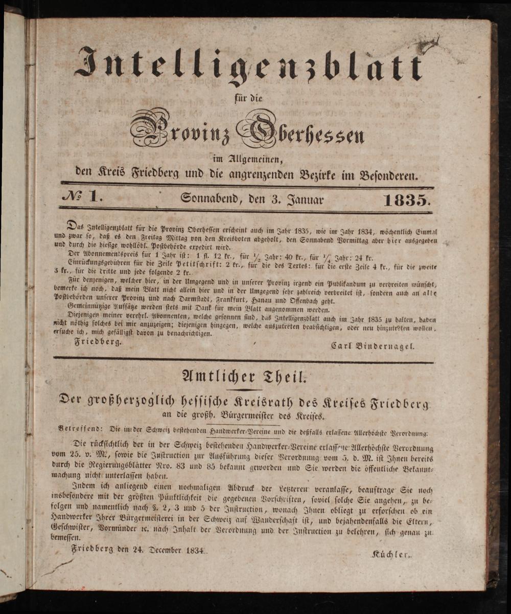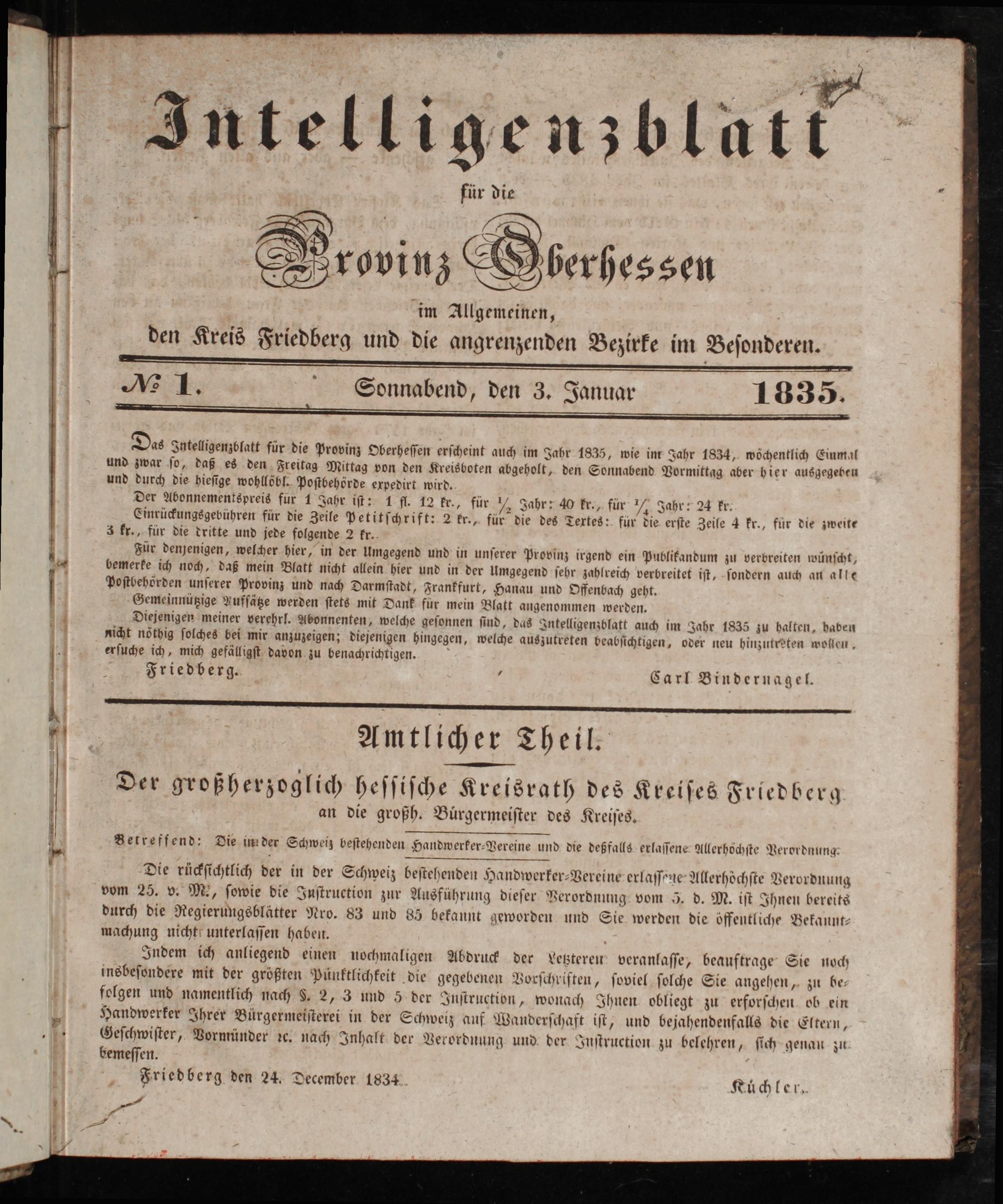 Intelligenzblatt für die Provinz Oberhessen. 1834-1834