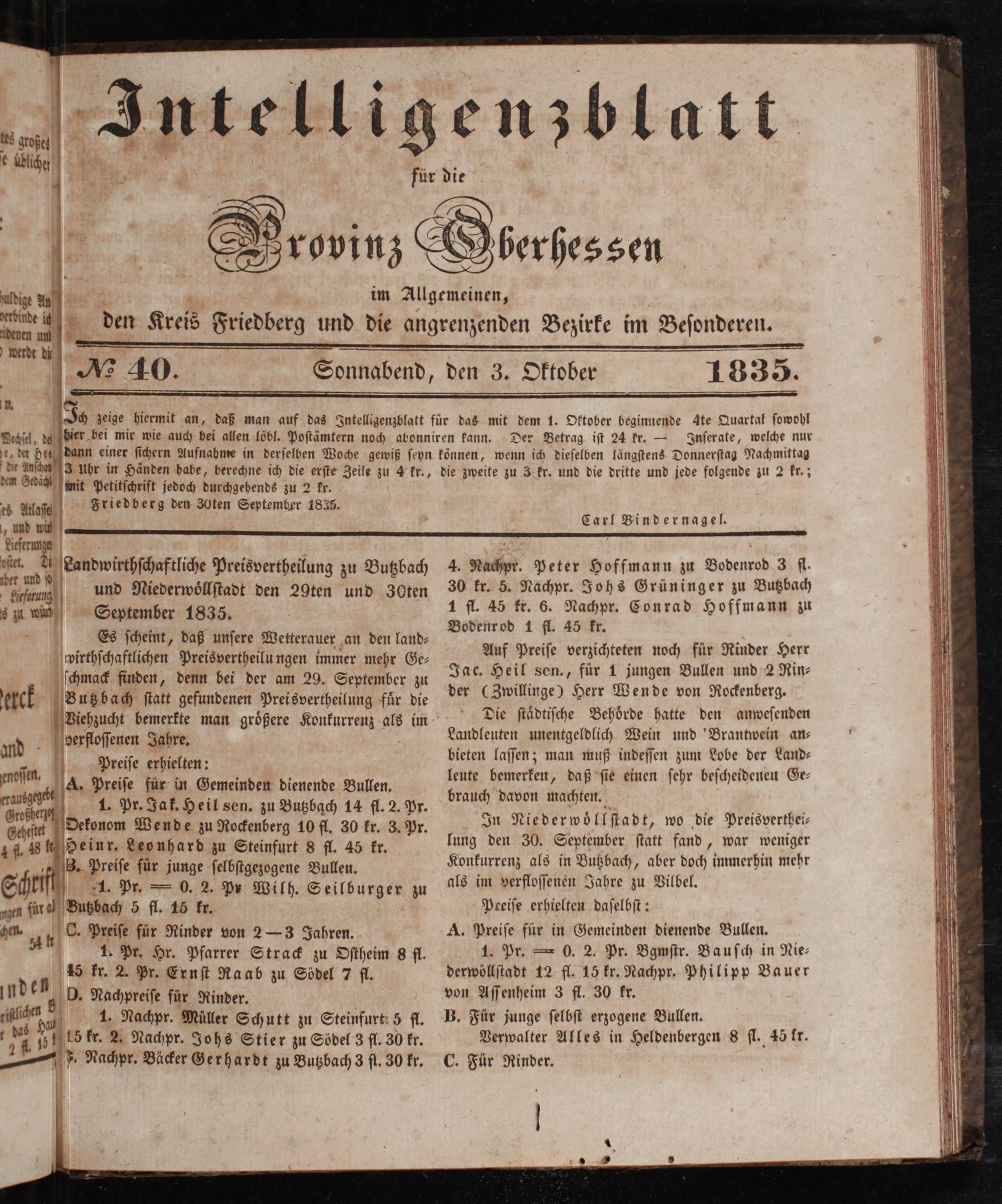 Intelligenzblatt für die Provinz Oberhessen. 1834-1834