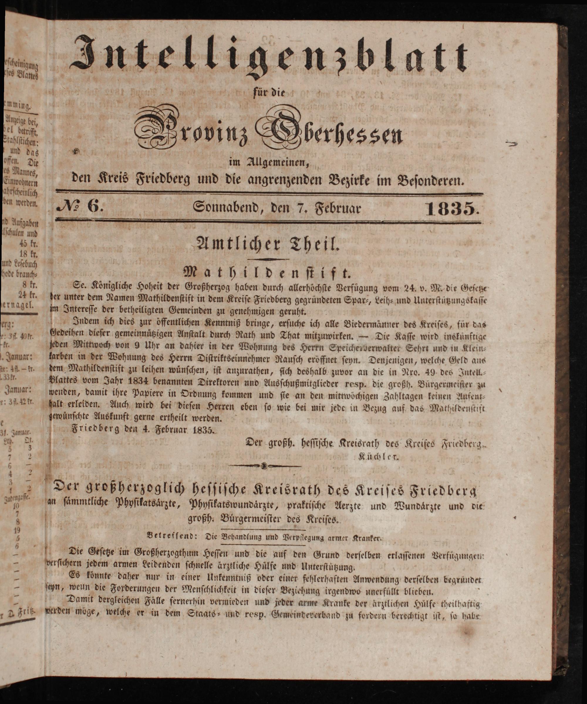 Intelligenzblatt für die Provinz Oberhessen. 1834-1834