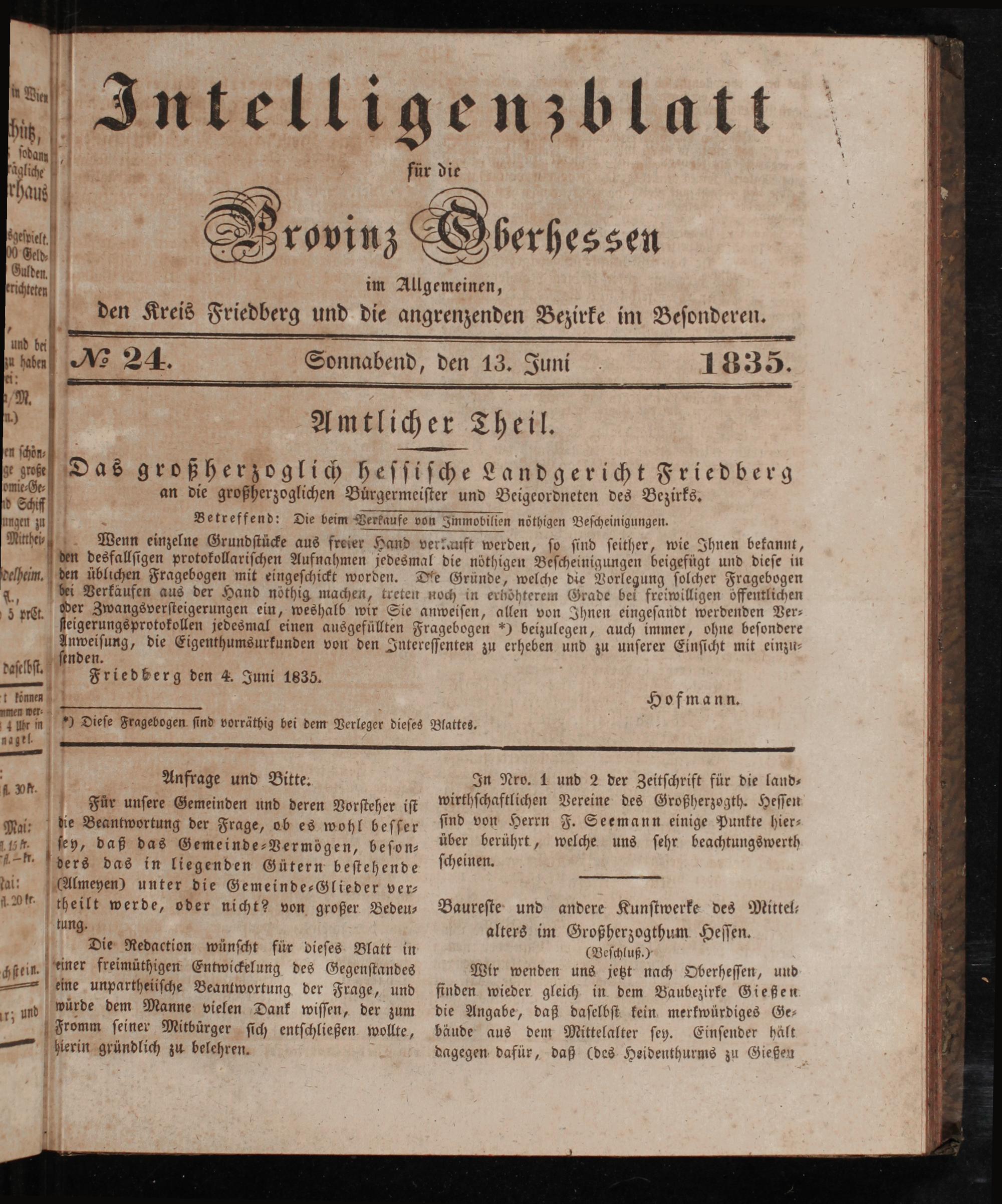 Intelligenzblatt für die Provinz Oberhessen. 1834-1834
