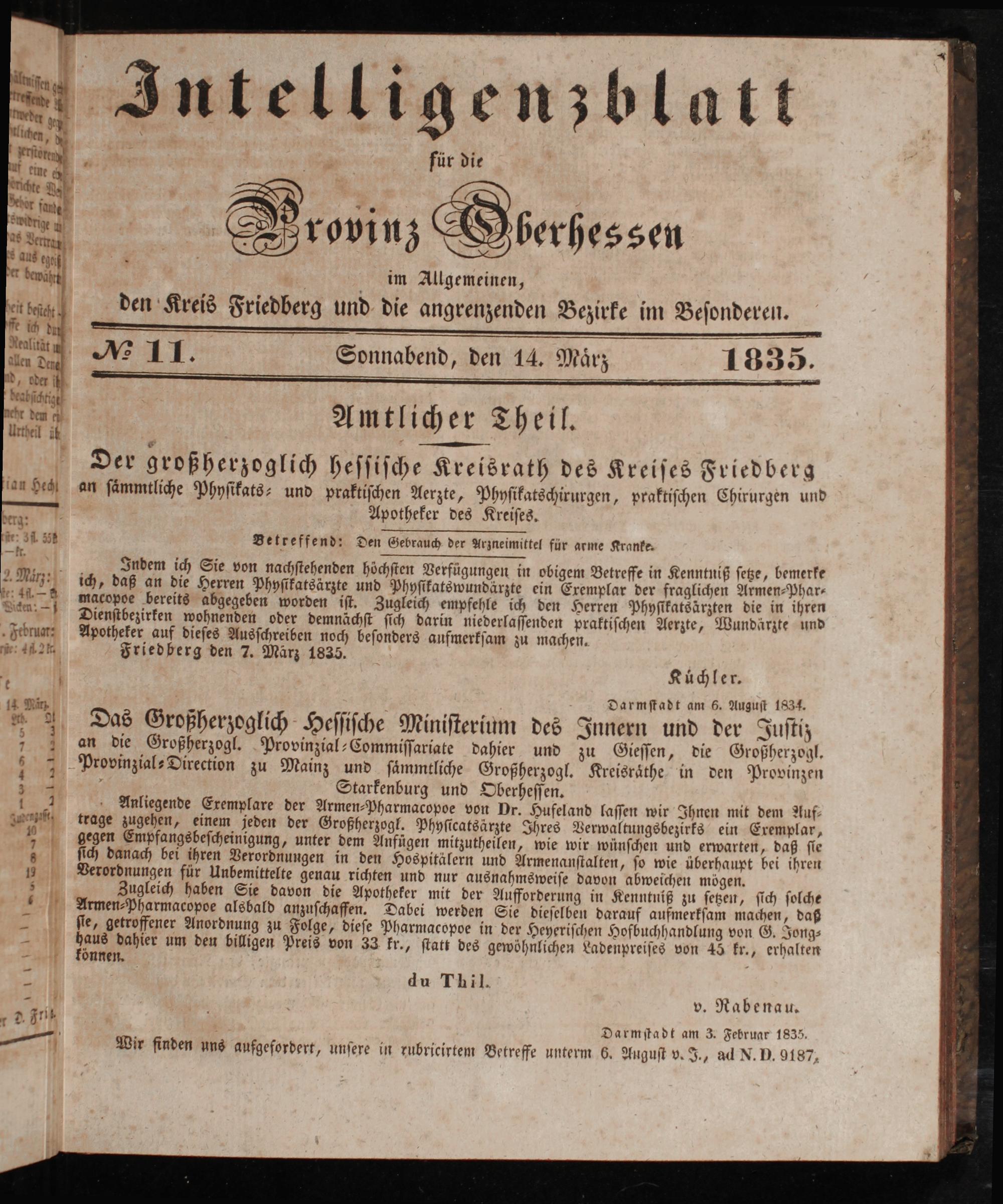 Intelligenzblatt für die Provinz Oberhessen. 1834-1834