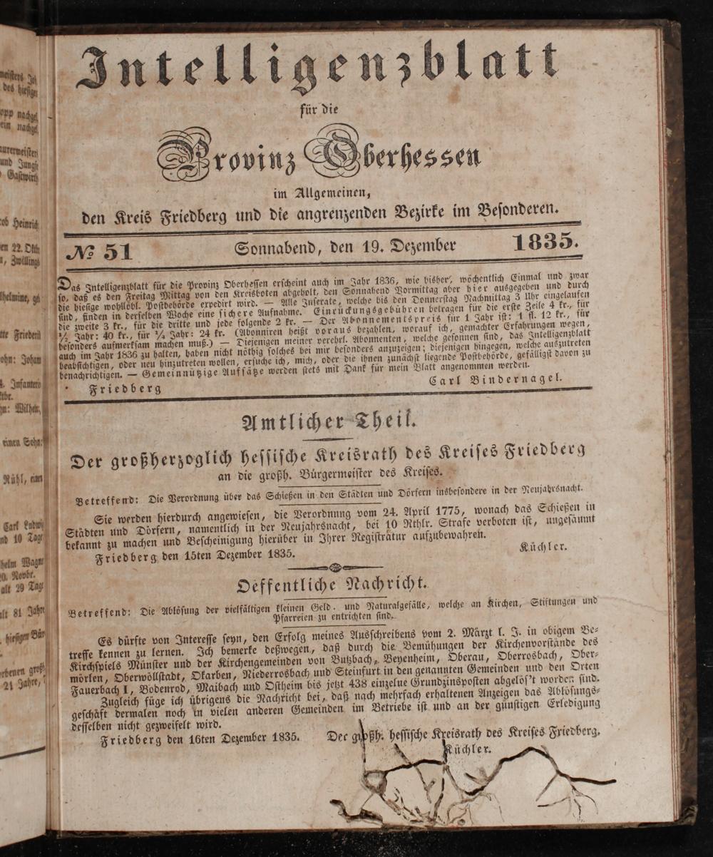 Intelligenzblatt für die Provinz Oberhessen. 1834-1834