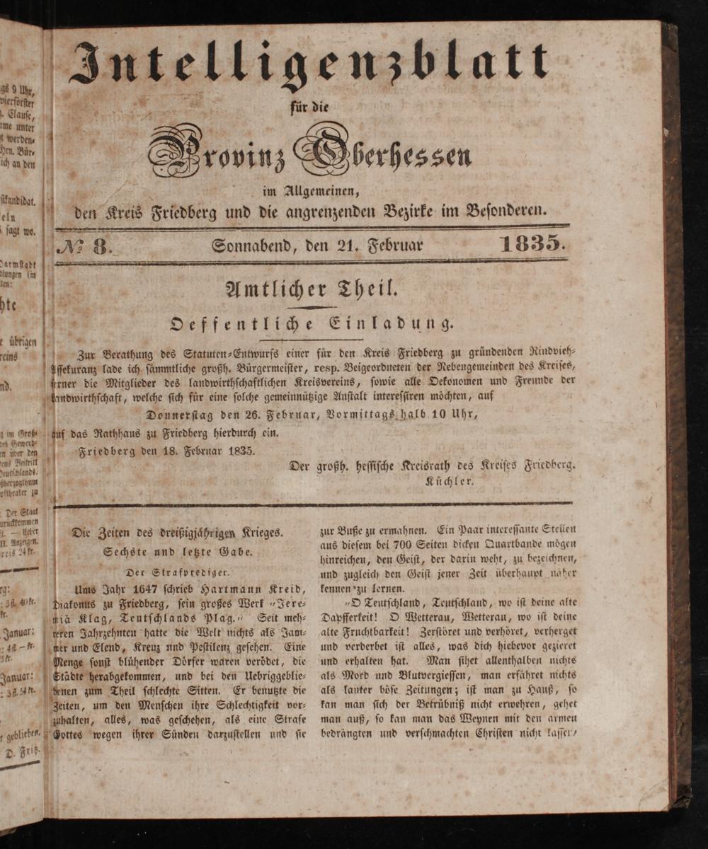 Intelligenzblatt für die Provinz Oberhessen. 1834-1834