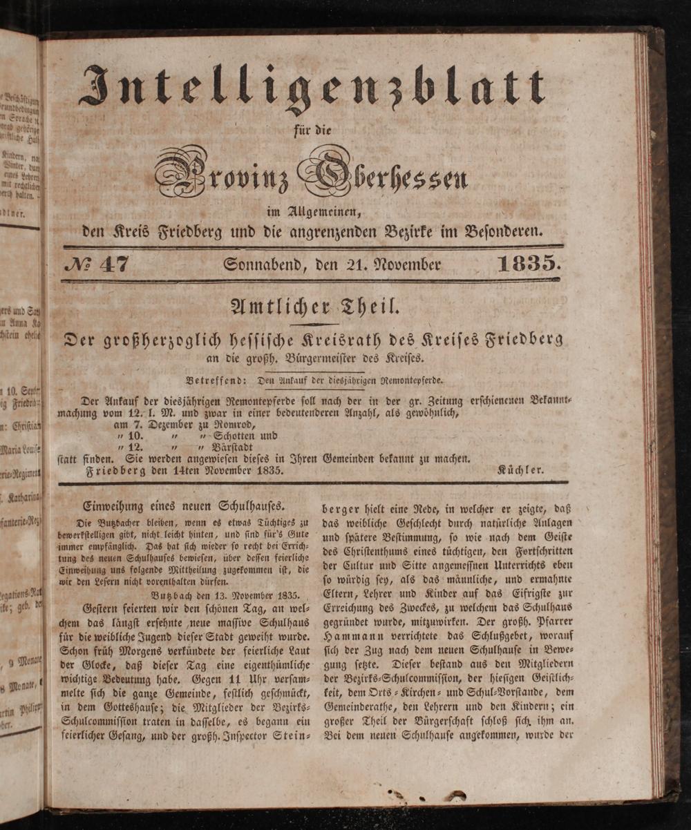Intelligenzblatt für die Provinz Oberhessen. 1834-1834