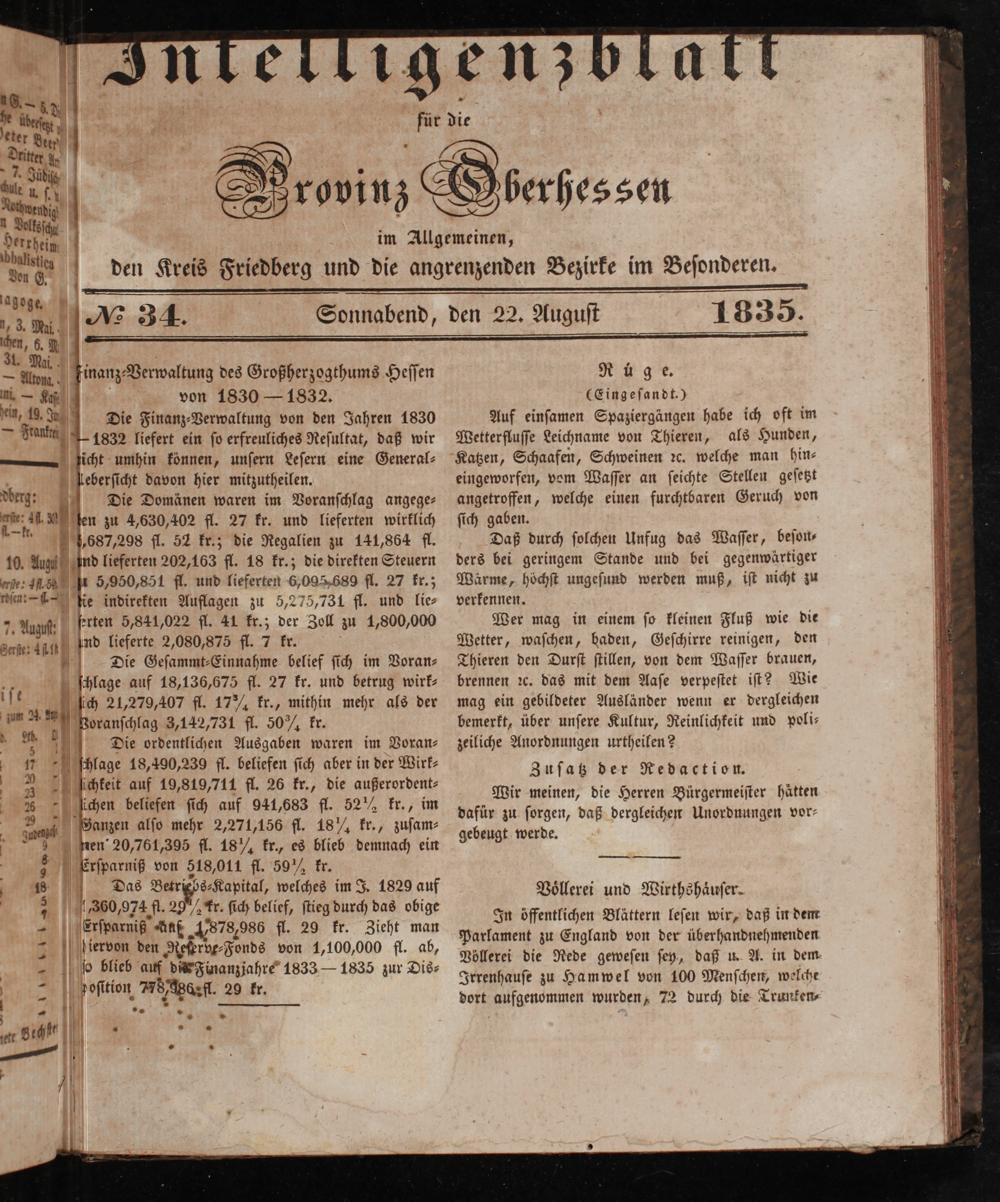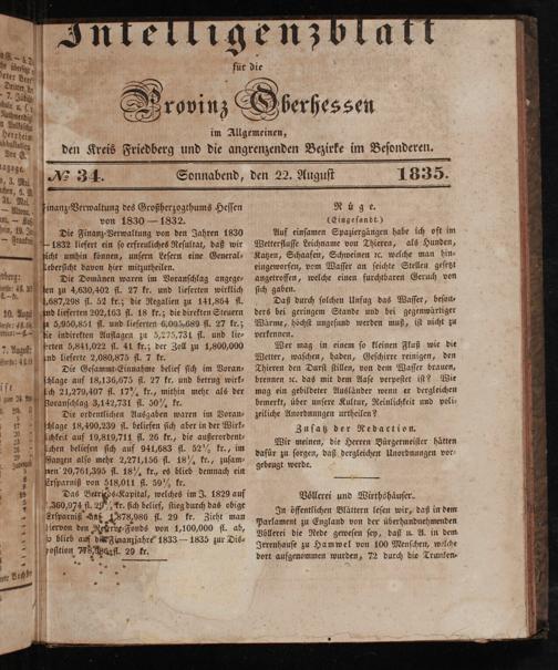 Intelligenzblatt für die Provinz Oberhessen. 1834-1834
