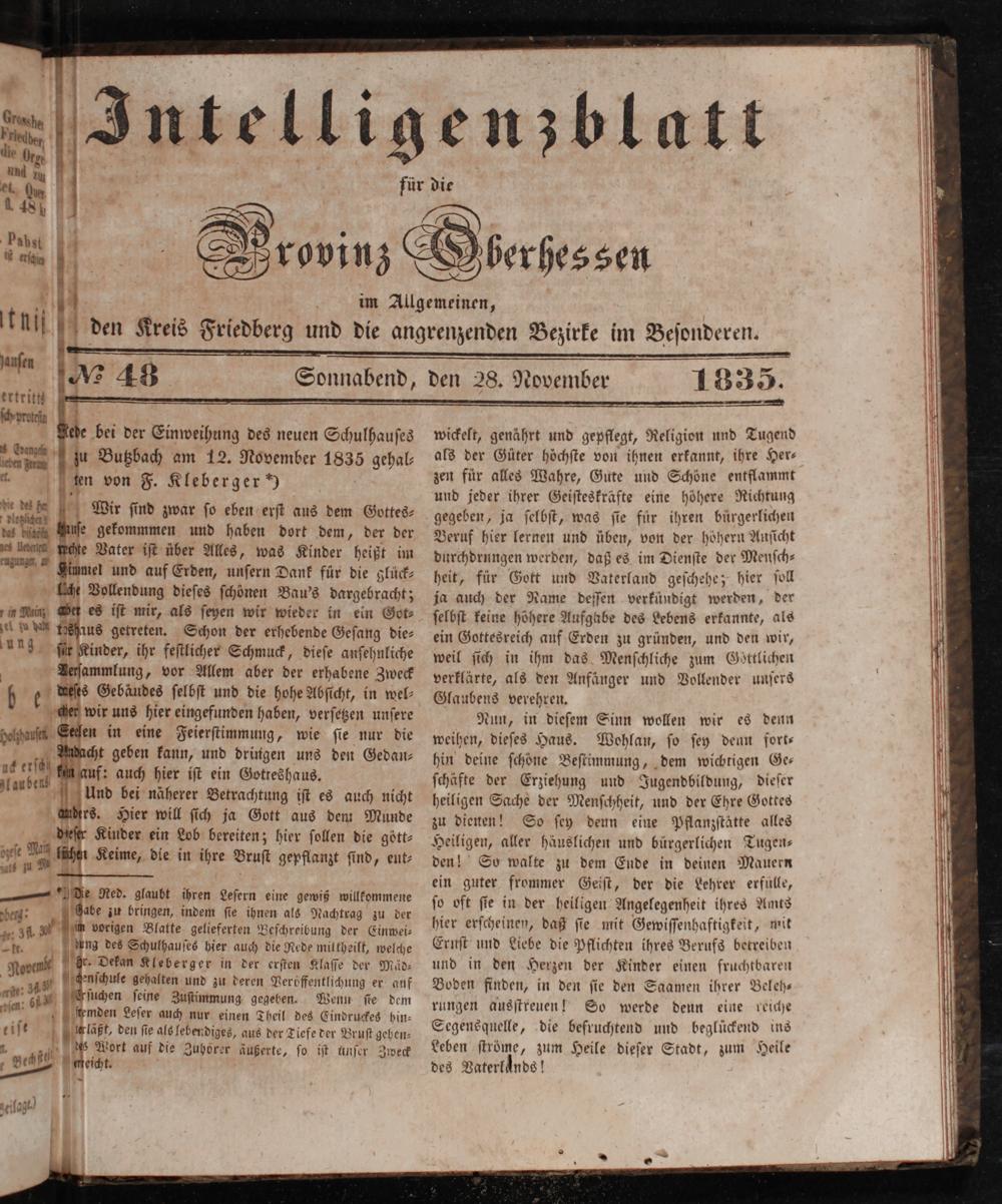 Intelligenzblatt für die Provinz Oberhessen. 1834-1834