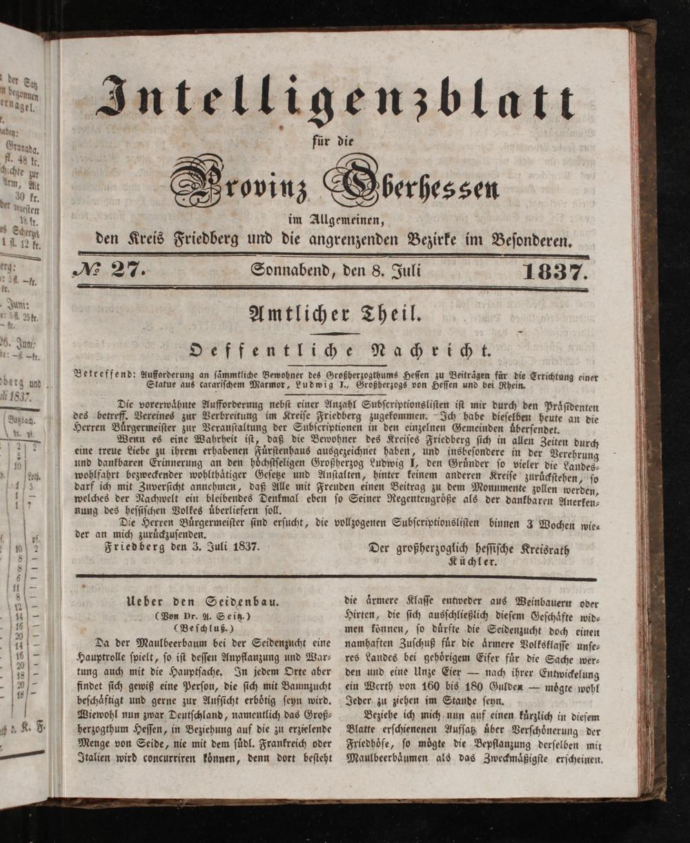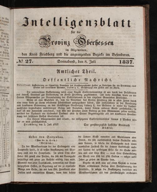Intelligenzblatt für die Provinz Oberhessen. 1834-1834