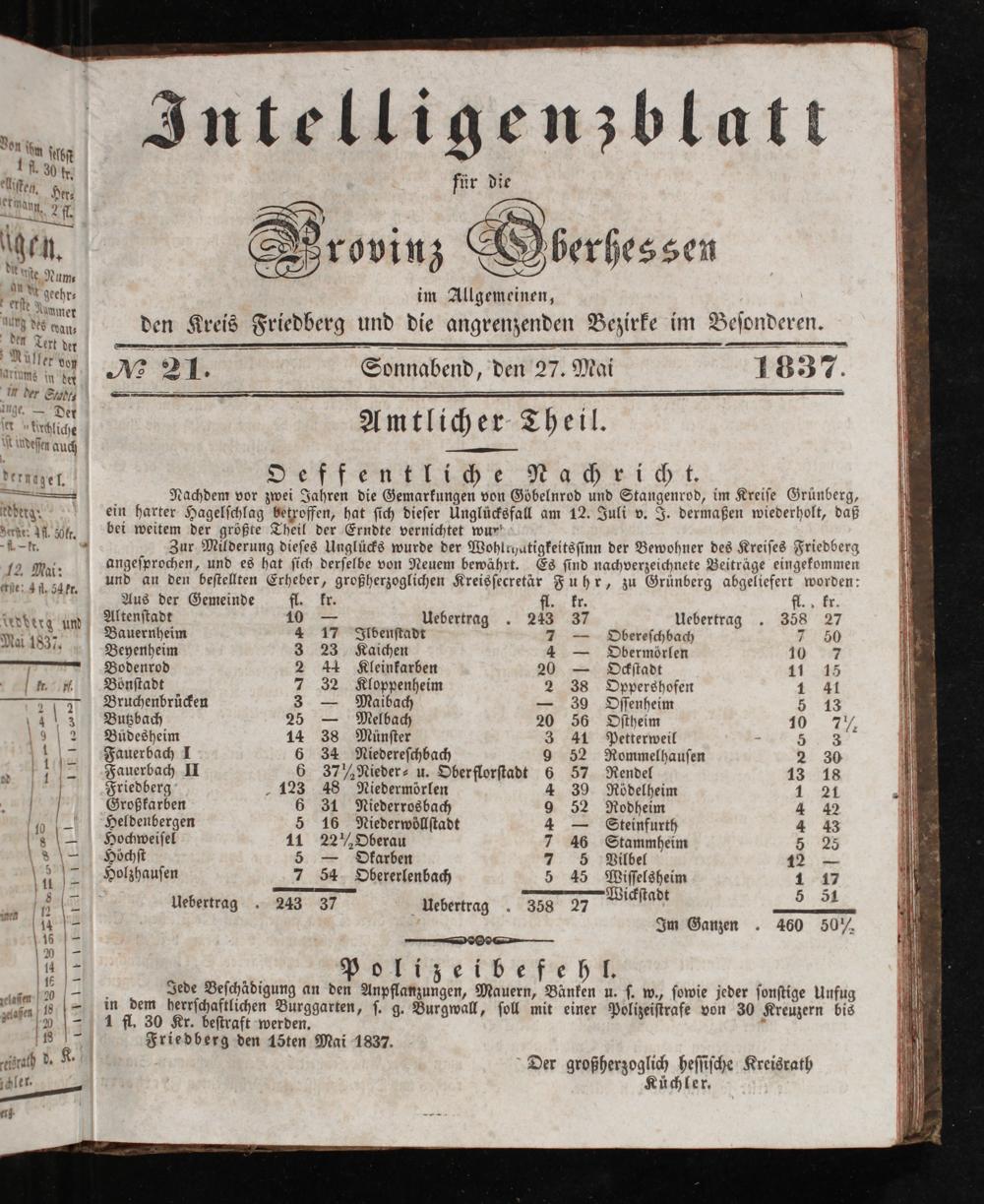 Intelligenzblatt für die Provinz Oberhessen. 1834-1834