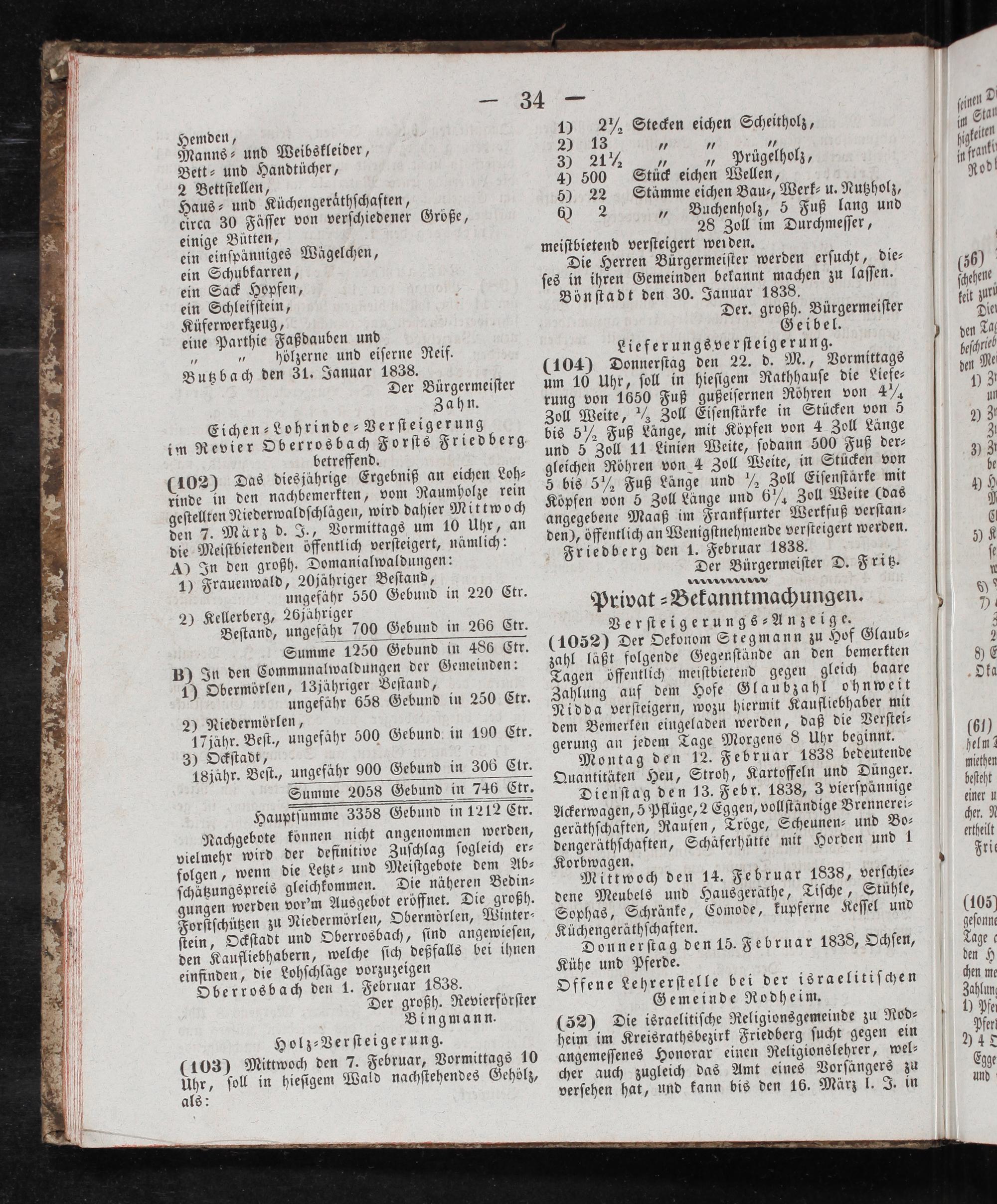 Intelligenzblatt für die Provinz Oberhessen. 1834-1834