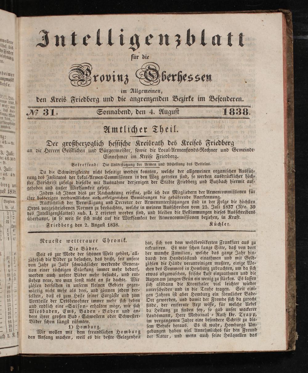 Intelligenzblatt für die Provinz Oberhessen. 1834-1834