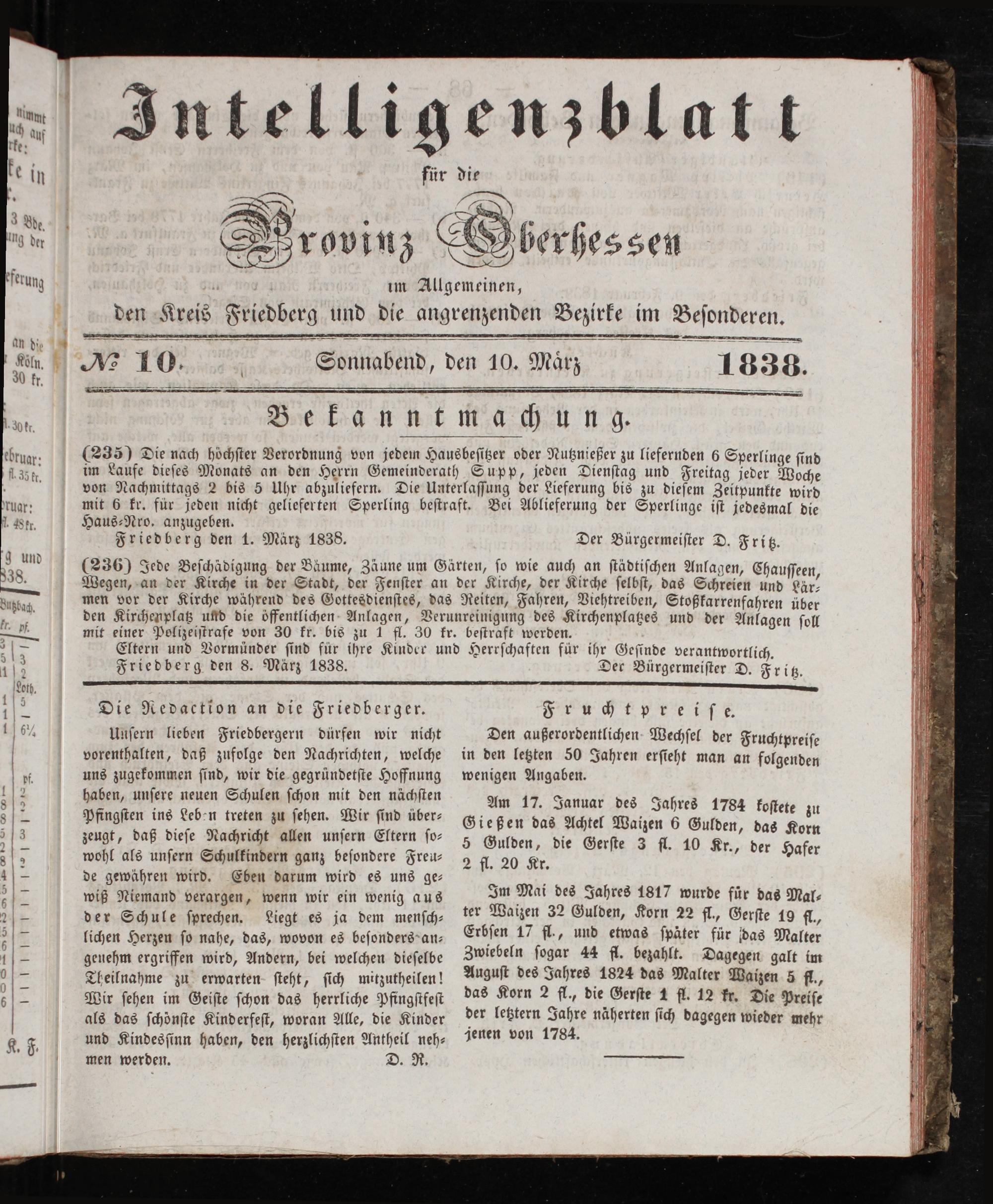 Intelligenzblatt für die Provinz Oberhessen. 1834-1834