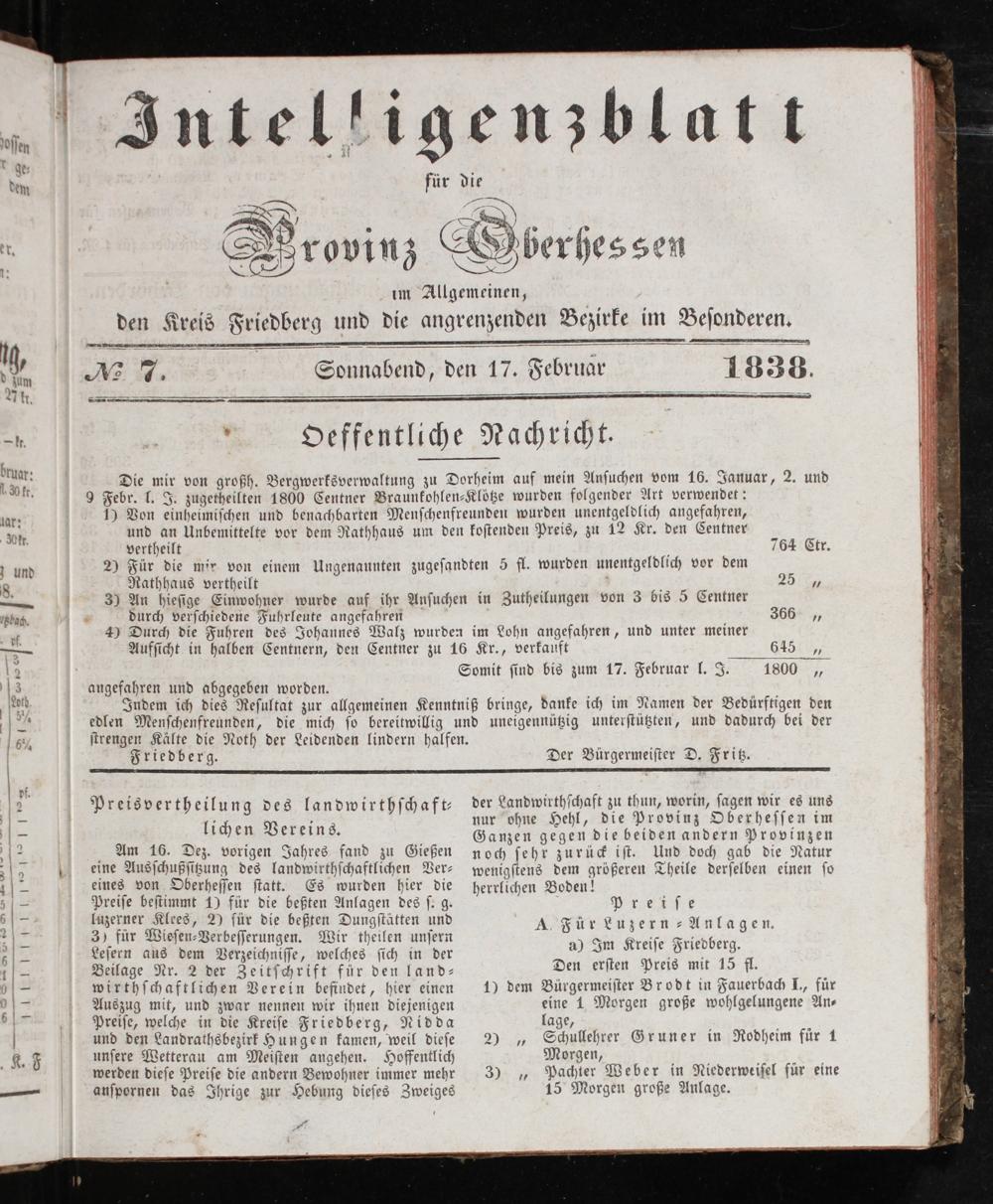 Intelligenzblatt für die Provinz Oberhessen. 1834-1834