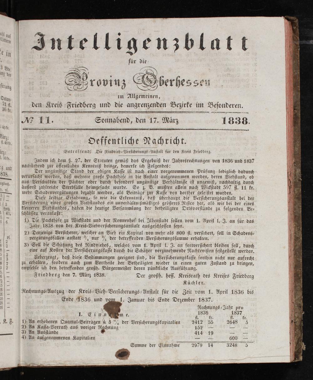 Intelligenzblatt für die Provinz Oberhessen. 1834-1834