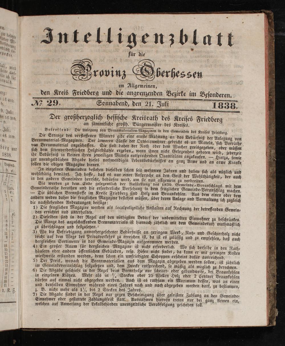 Intelligenzblatt für die Provinz Oberhessen. 1834-1834