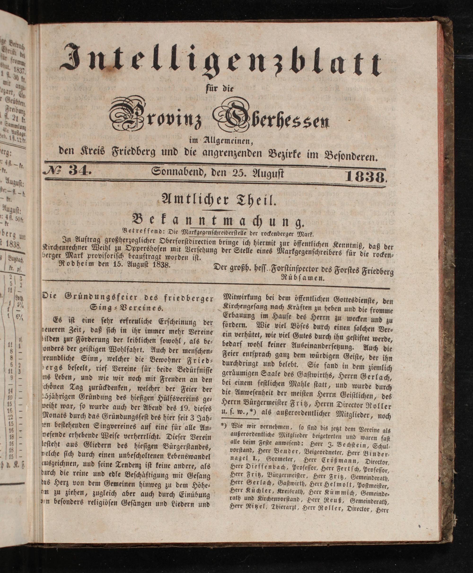 Intelligenzblatt für die Provinz Oberhessen. 1834-1834