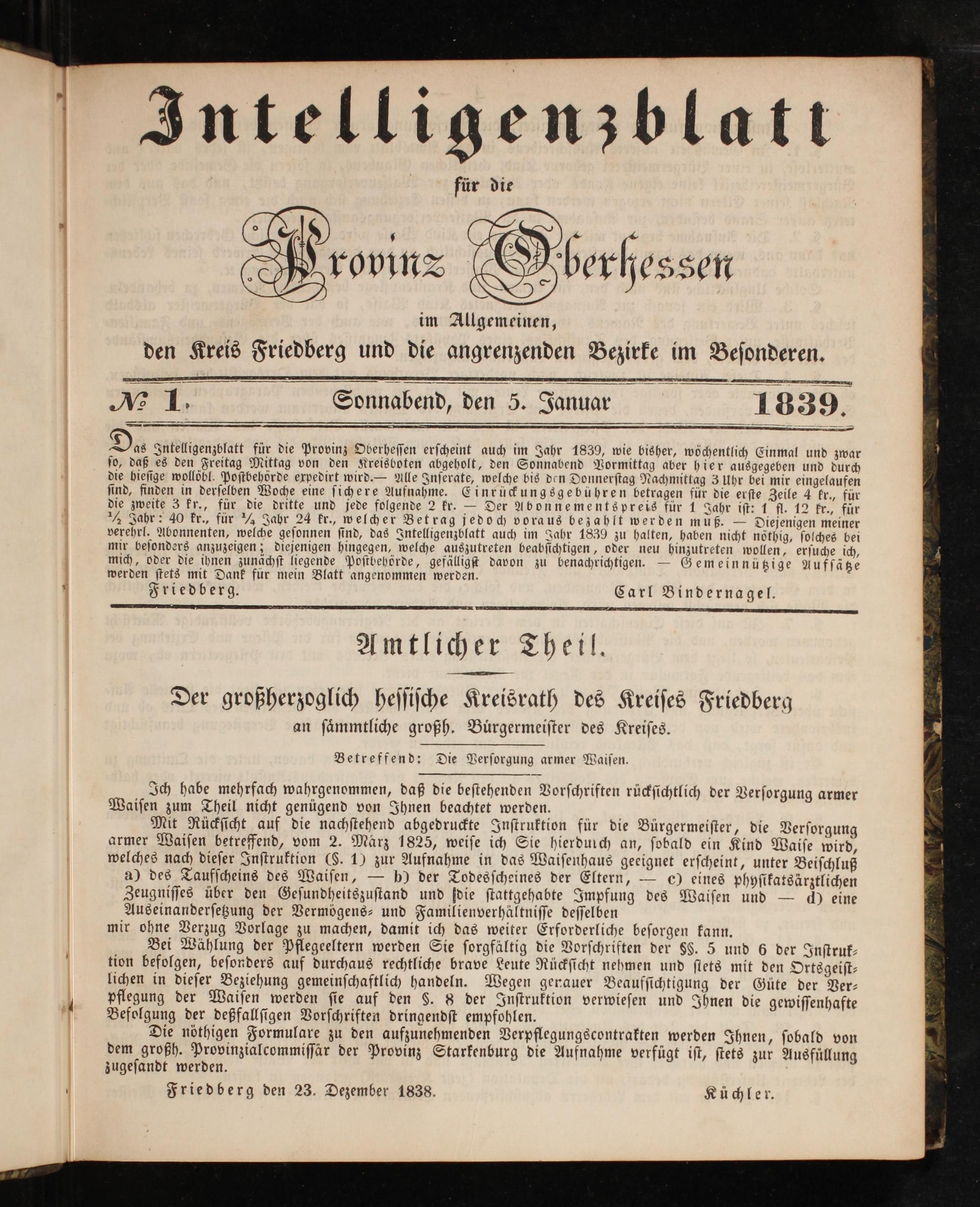 Intelligenzblatt für die Provinz Oberhessen. 1834-1834
