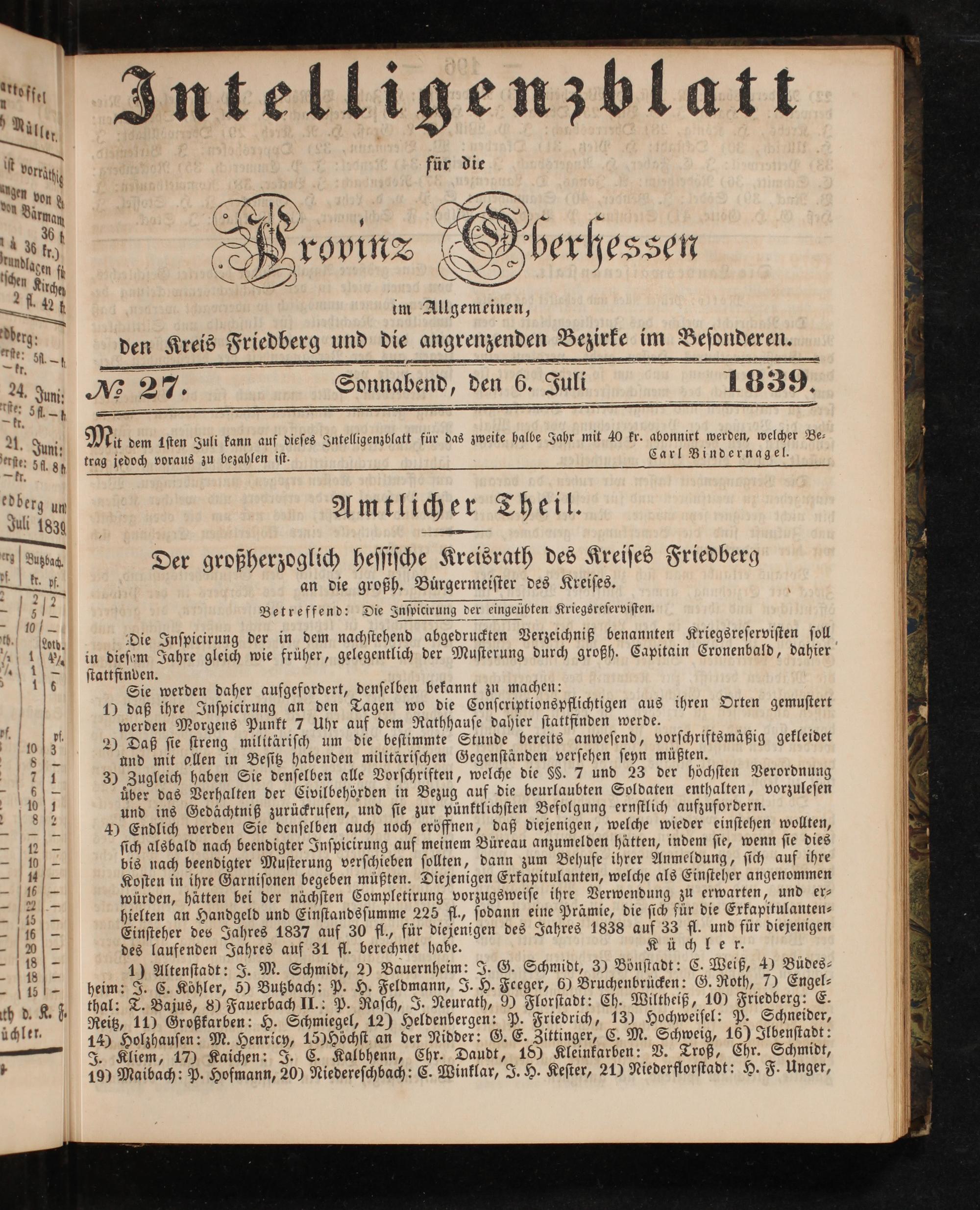 Intelligenzblatt für die Provinz Oberhessen. 1834-1834