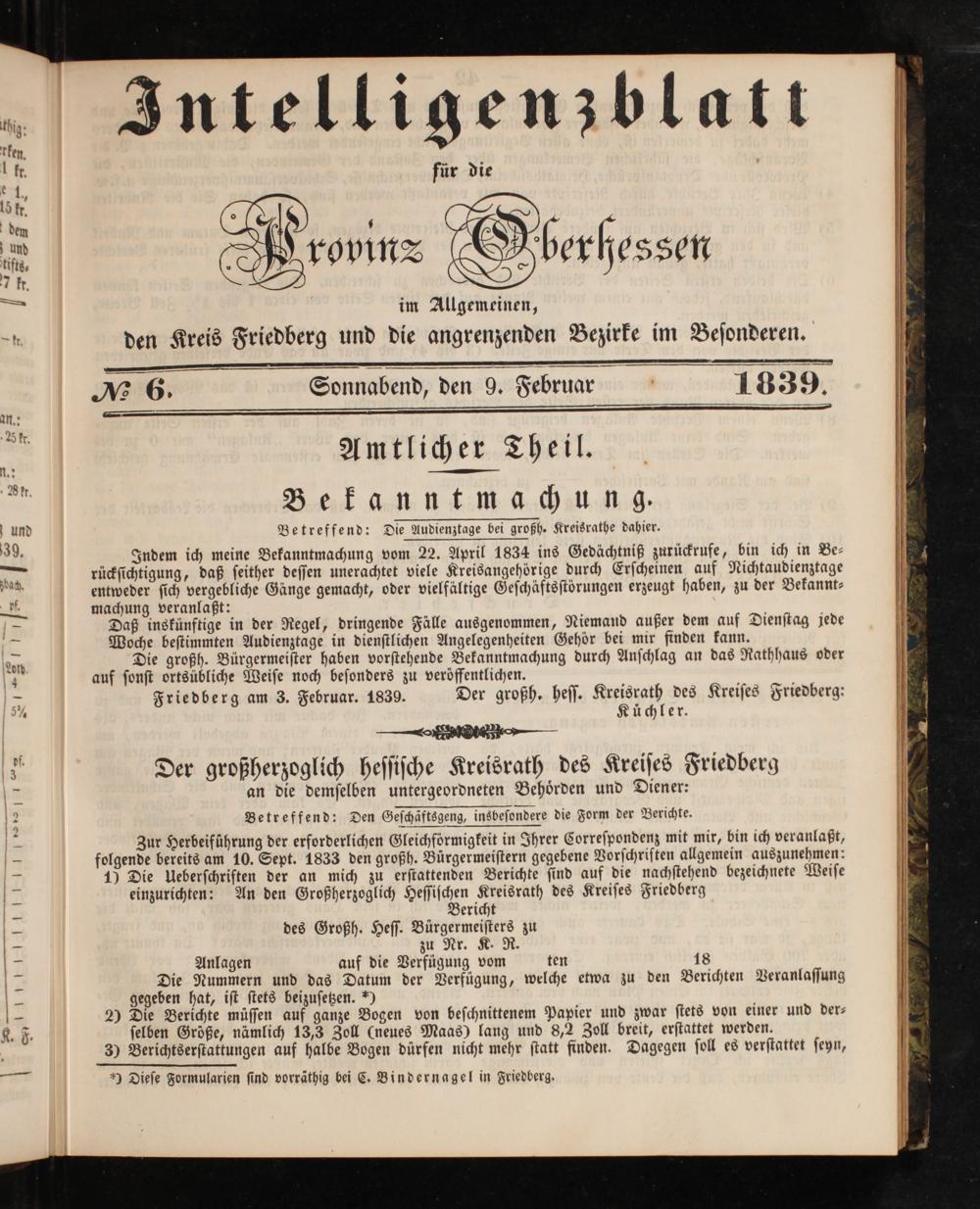 Intelligenzblatt für die Provinz Oberhessen. 1834-1834