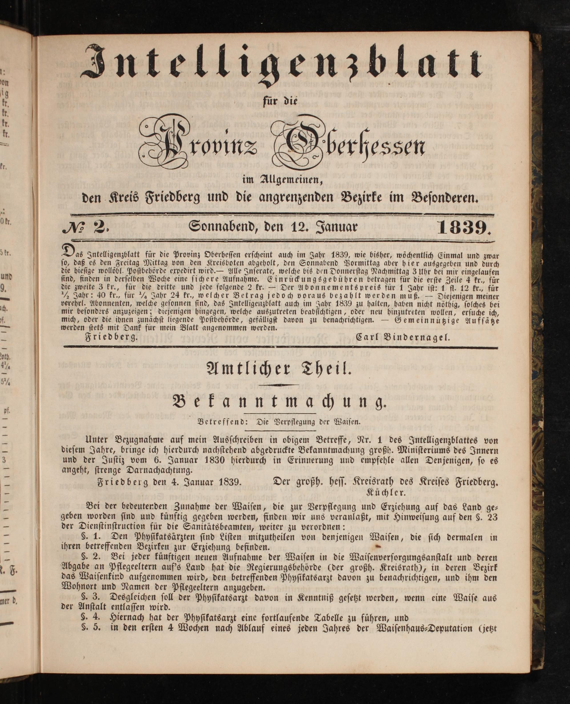 Intelligenzblatt für die Provinz Oberhessen. 1834-1834