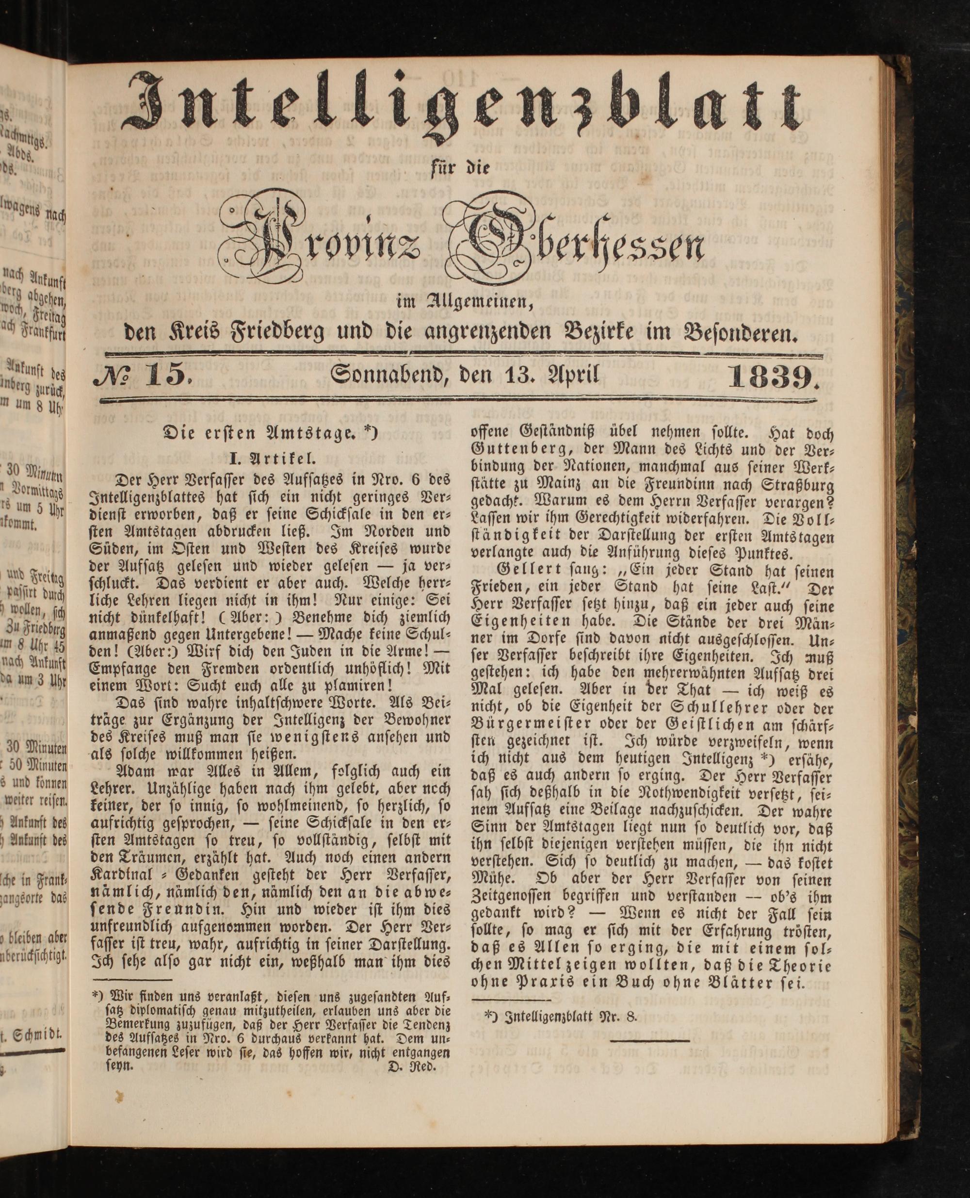 Intelligenzblatt für die Provinz Oberhessen. 1834-1834