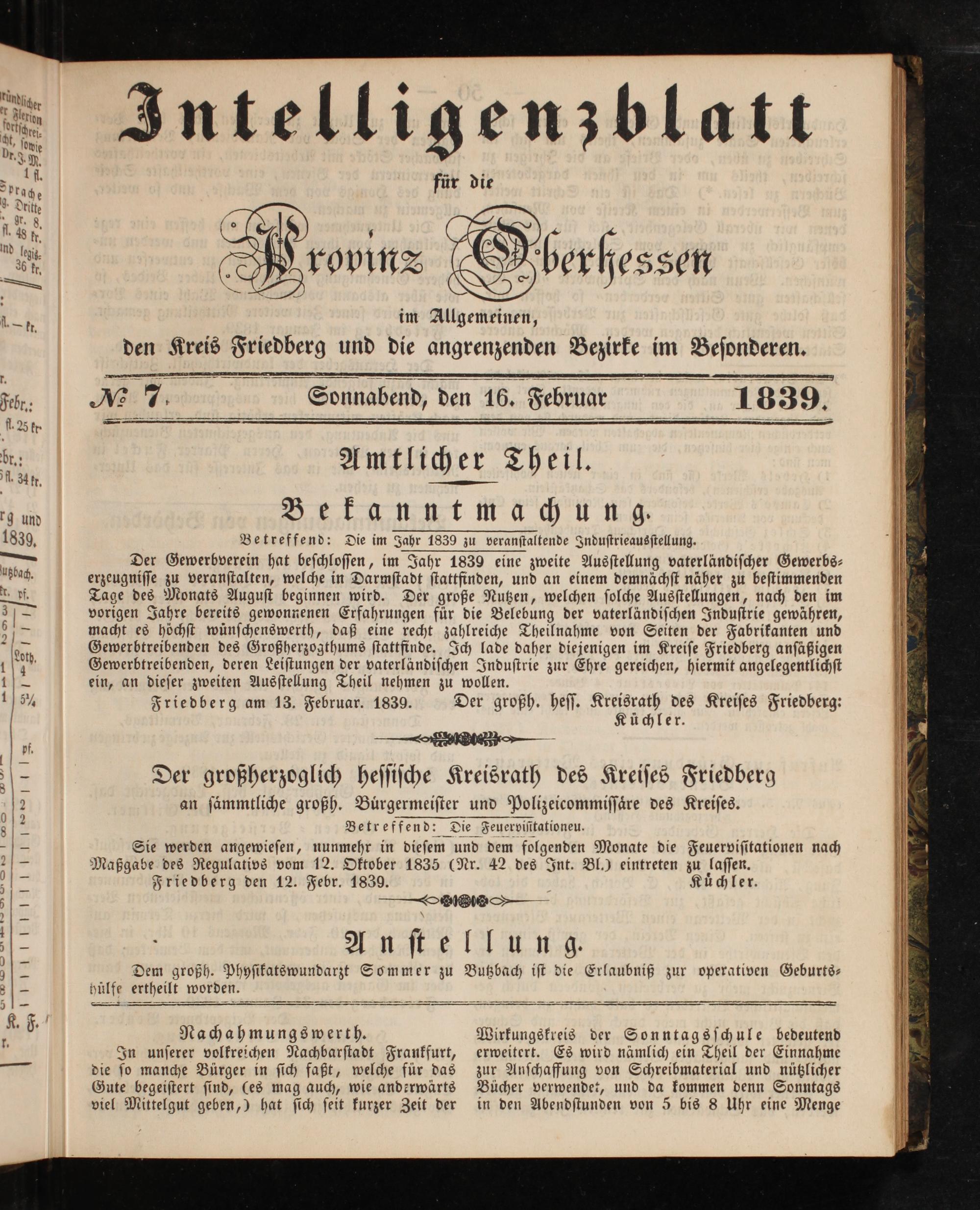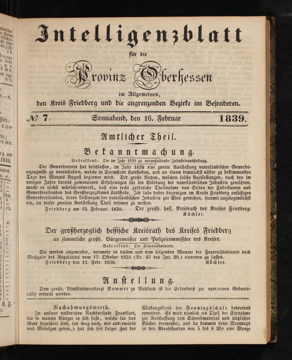 Intelligenzblatt für die Provinz Oberhessen. 1834-1834