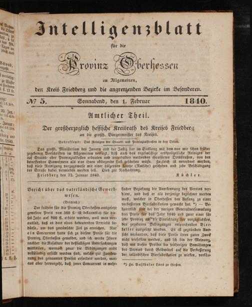 Intelligenzblatt für die Provinz Oberhessen. 1834-1834