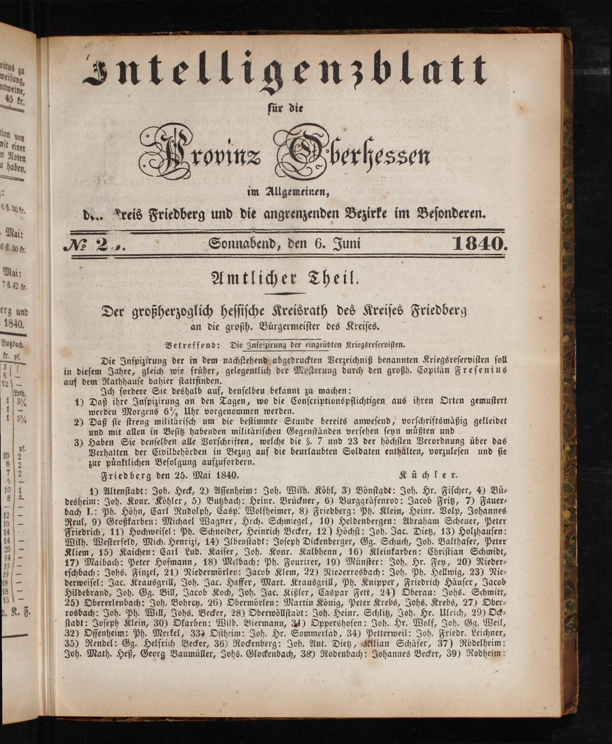 Intelligenzblatt für die Provinz Oberhessen. 1834-1834