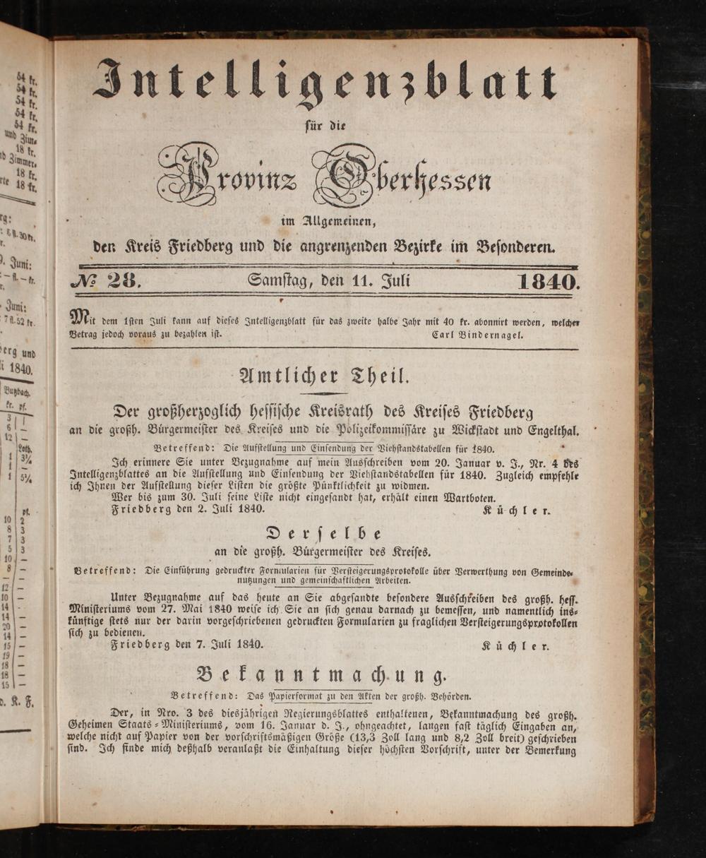 Intelligenzblatt für die Provinz Oberhessen. 1834-1834