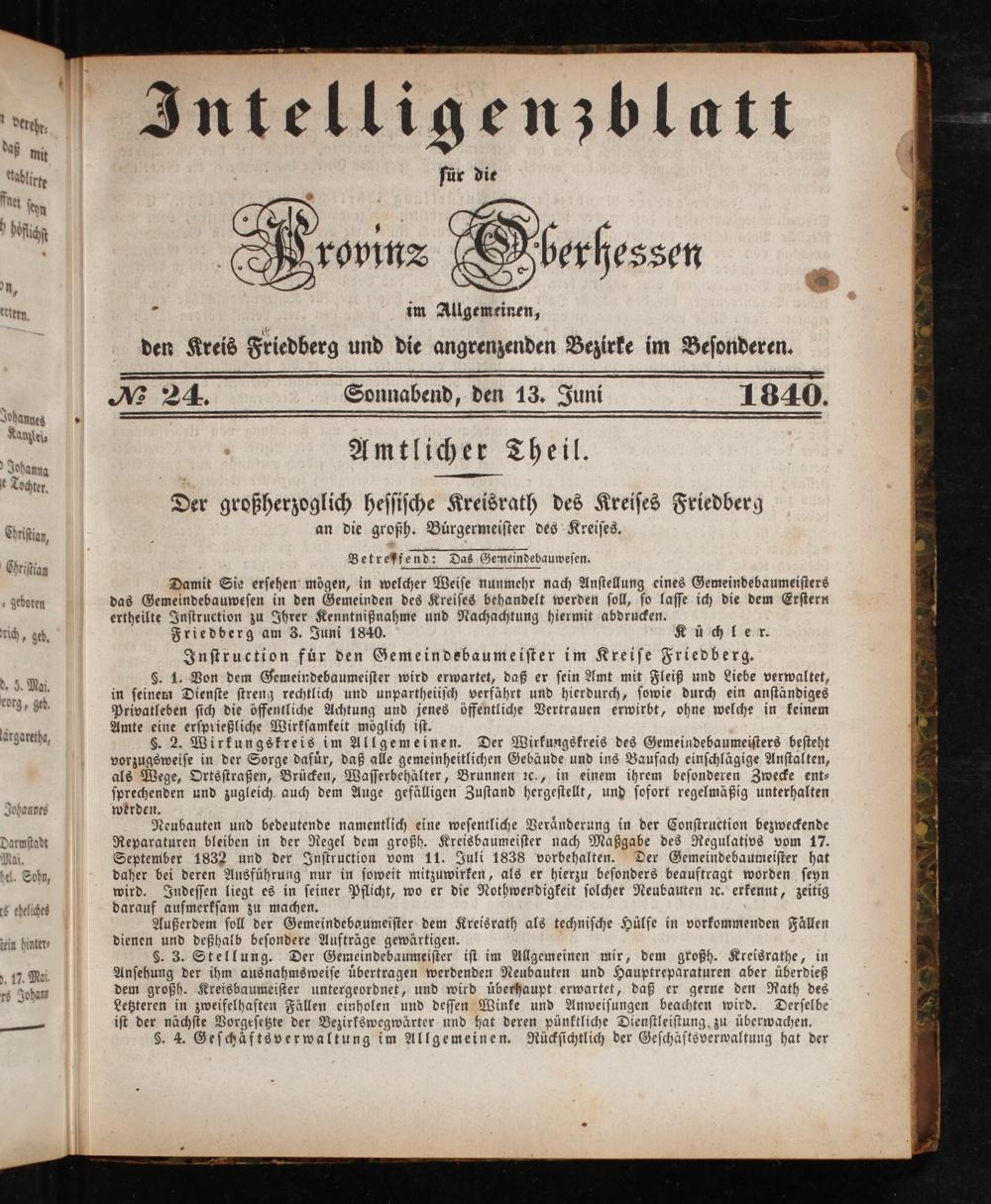 Intelligenzblatt für die Provinz Oberhessen. 1834-1834