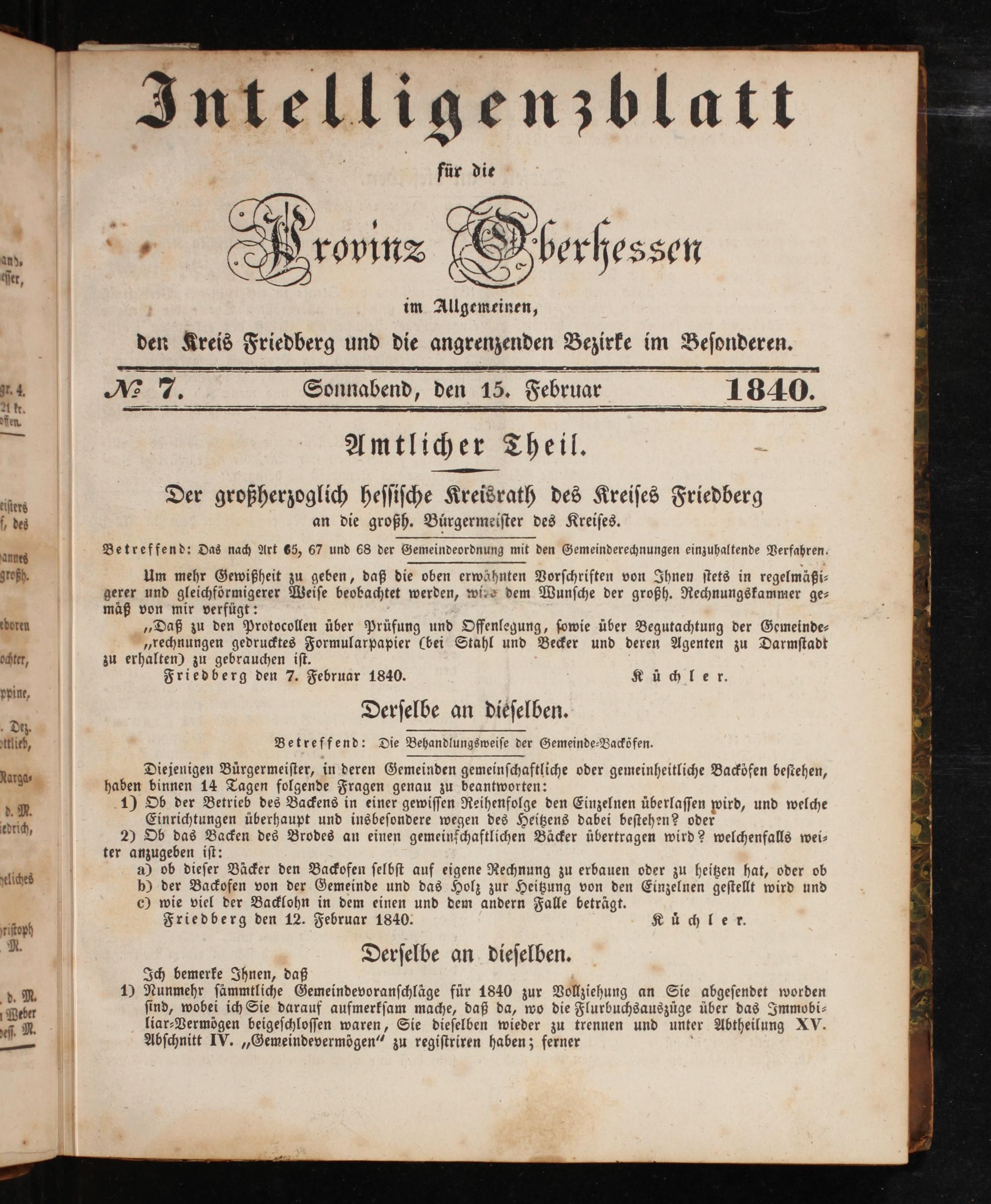 Intelligenzblatt für die Provinz Oberhessen. 1834-1834