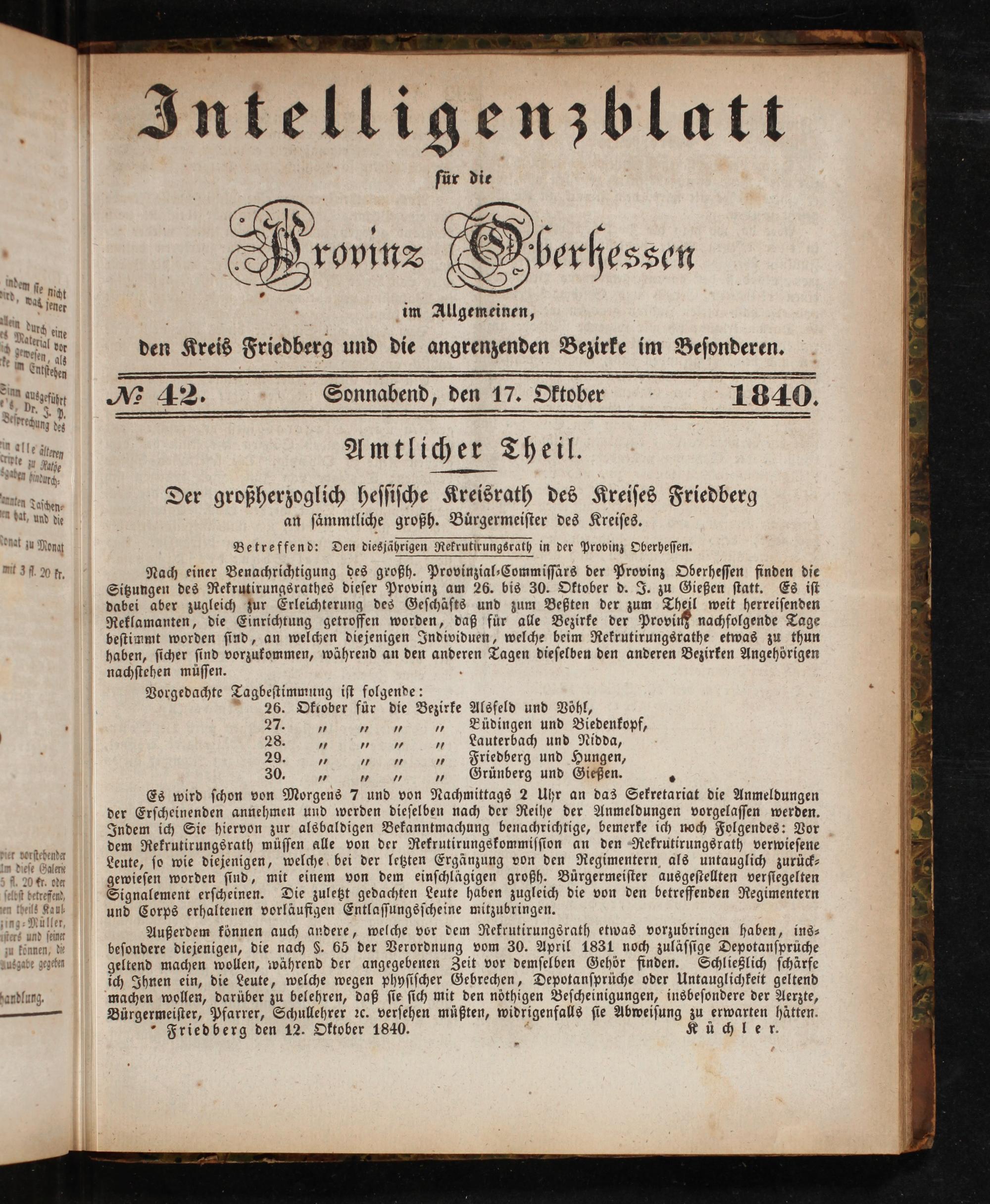 Intelligenzblatt für die Provinz Oberhessen. 1834-1834