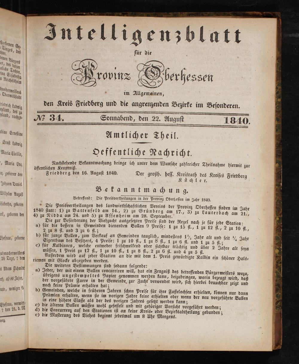 Intelligenzblatt für die Provinz Oberhessen. 1834-1834