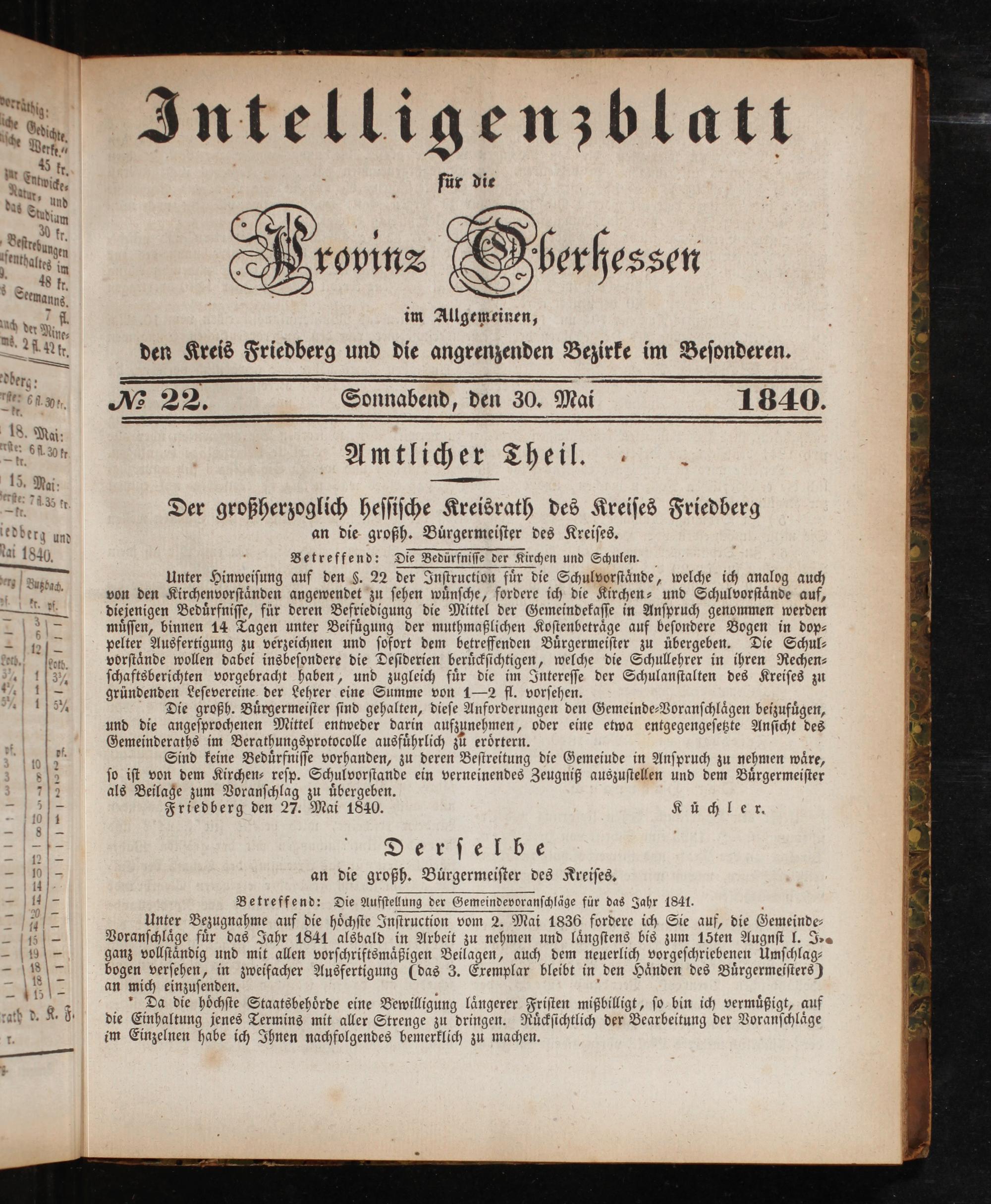 Intelligenzblatt für die Provinz Oberhessen. 1834-1834