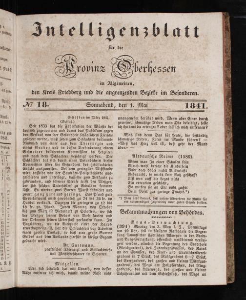 Intelligenzblatt für die Provinz Oberhessen. 1834-1834