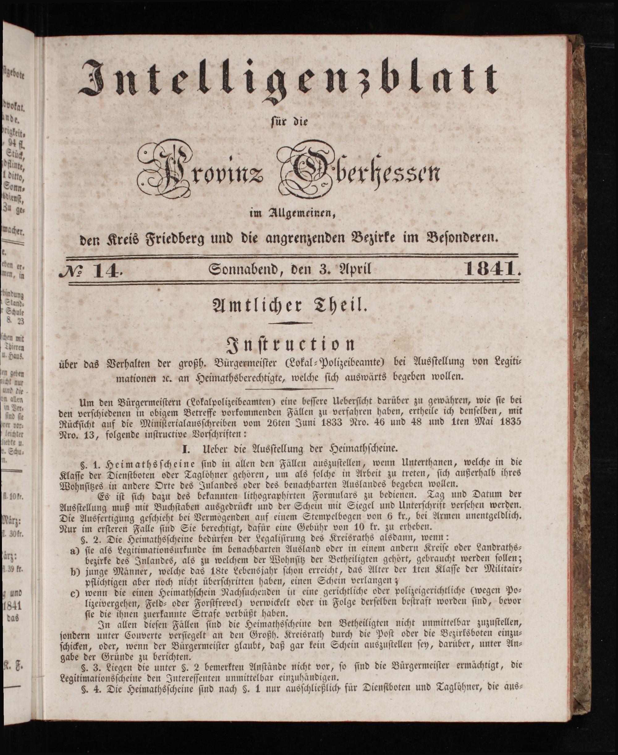 Intelligenzblatt für die Provinz Oberhessen. 1834-1834