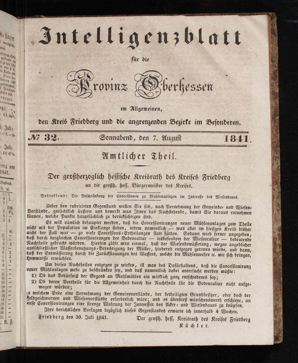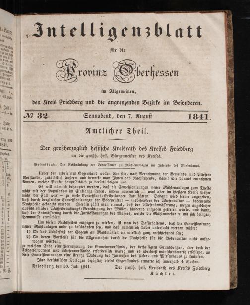 Intelligenzblatt für die Provinz Oberhessen. 1834-1834