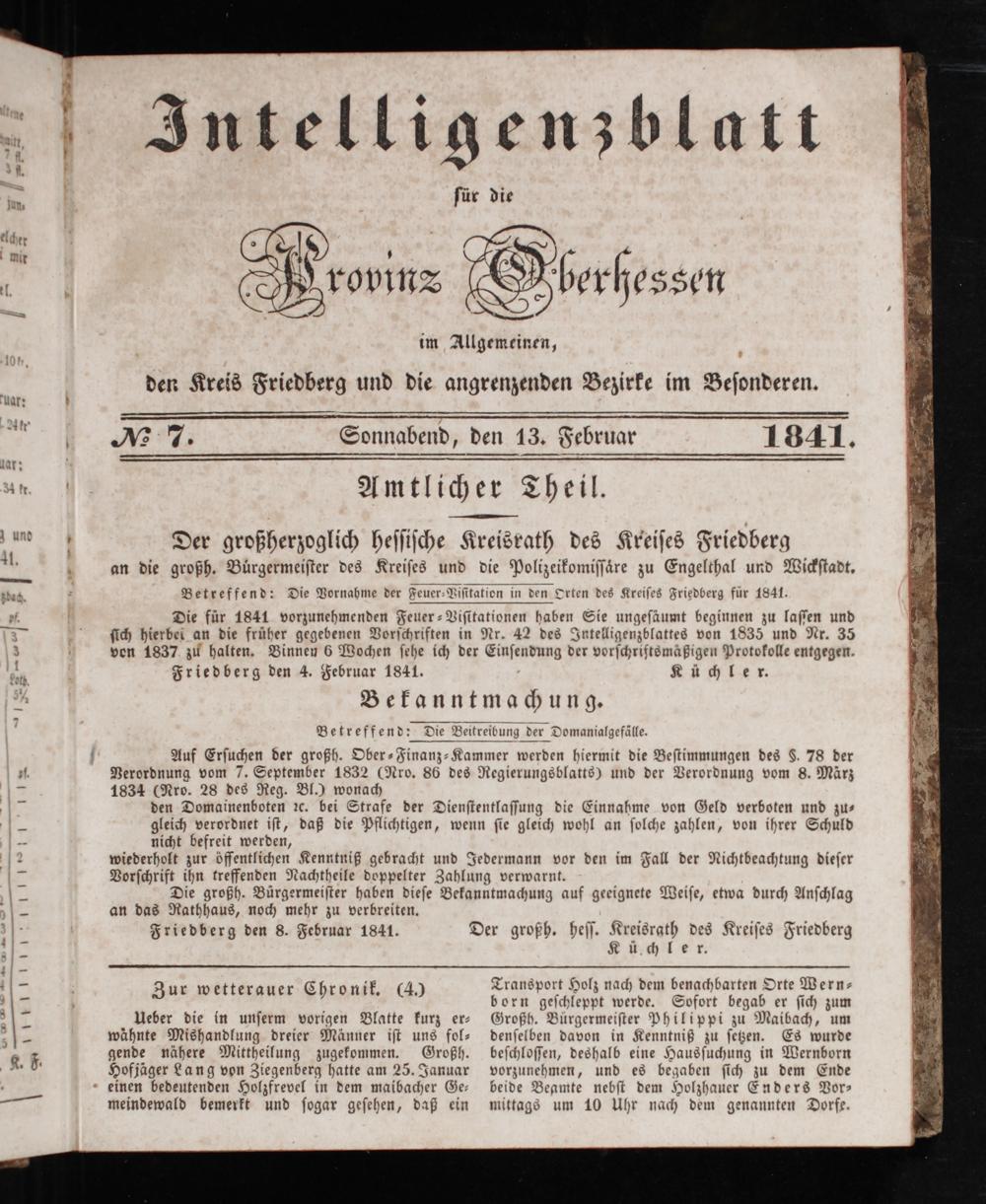 Intelligenzblatt für die Provinz Oberhessen. 1834-1834