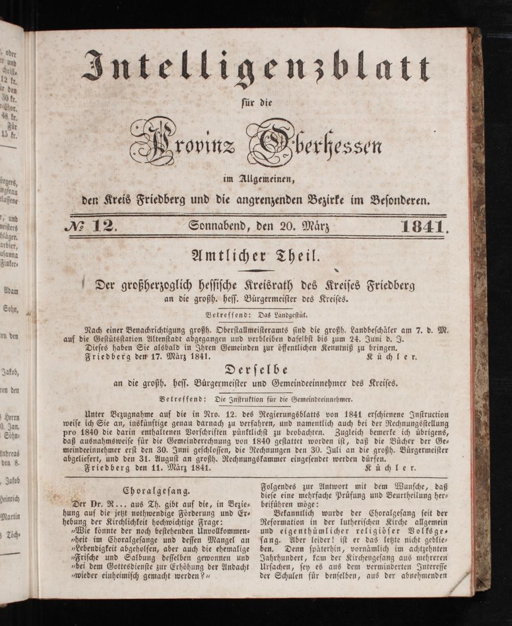 Intelligenzblatt für die Provinz Oberhessen. 1834-1834