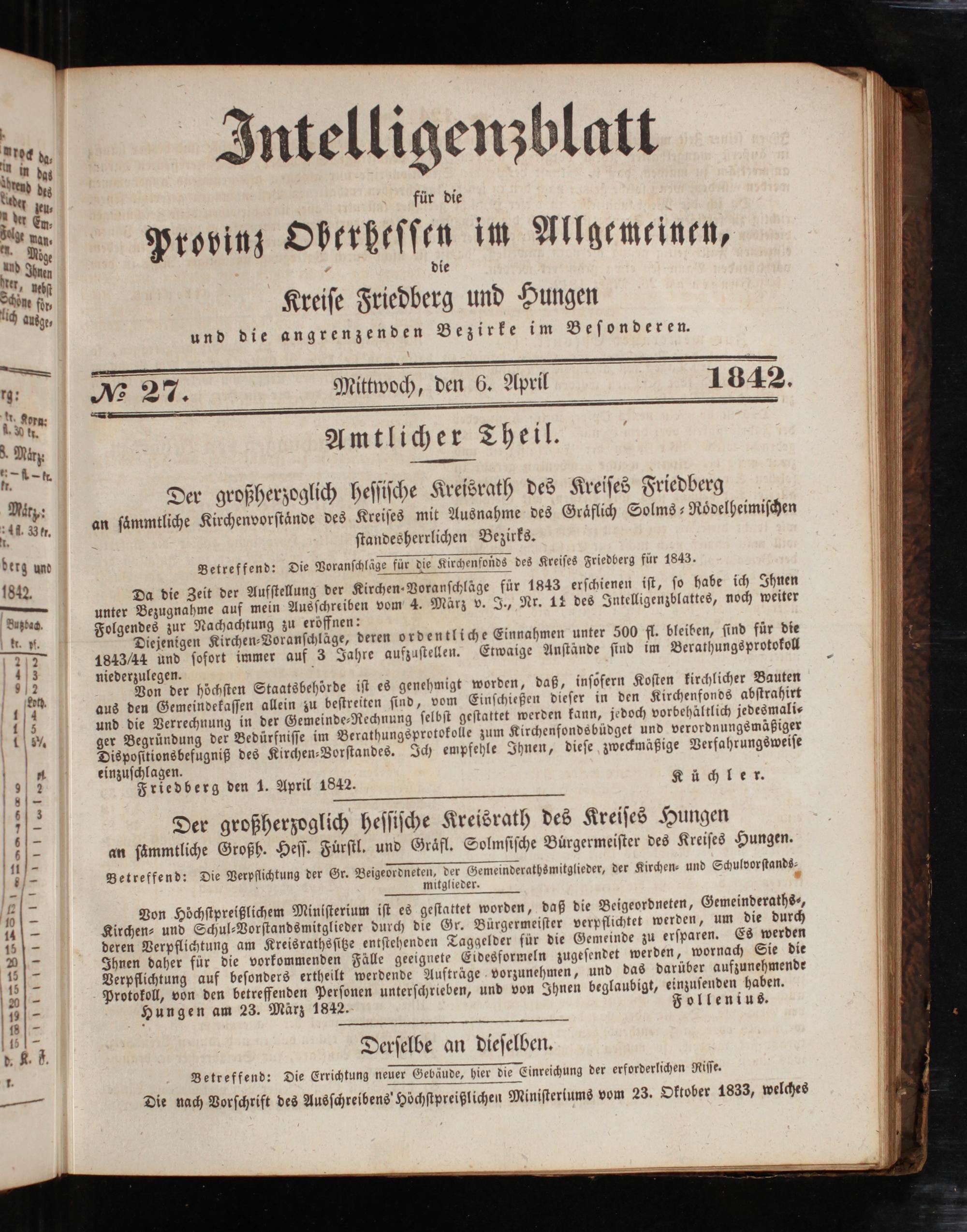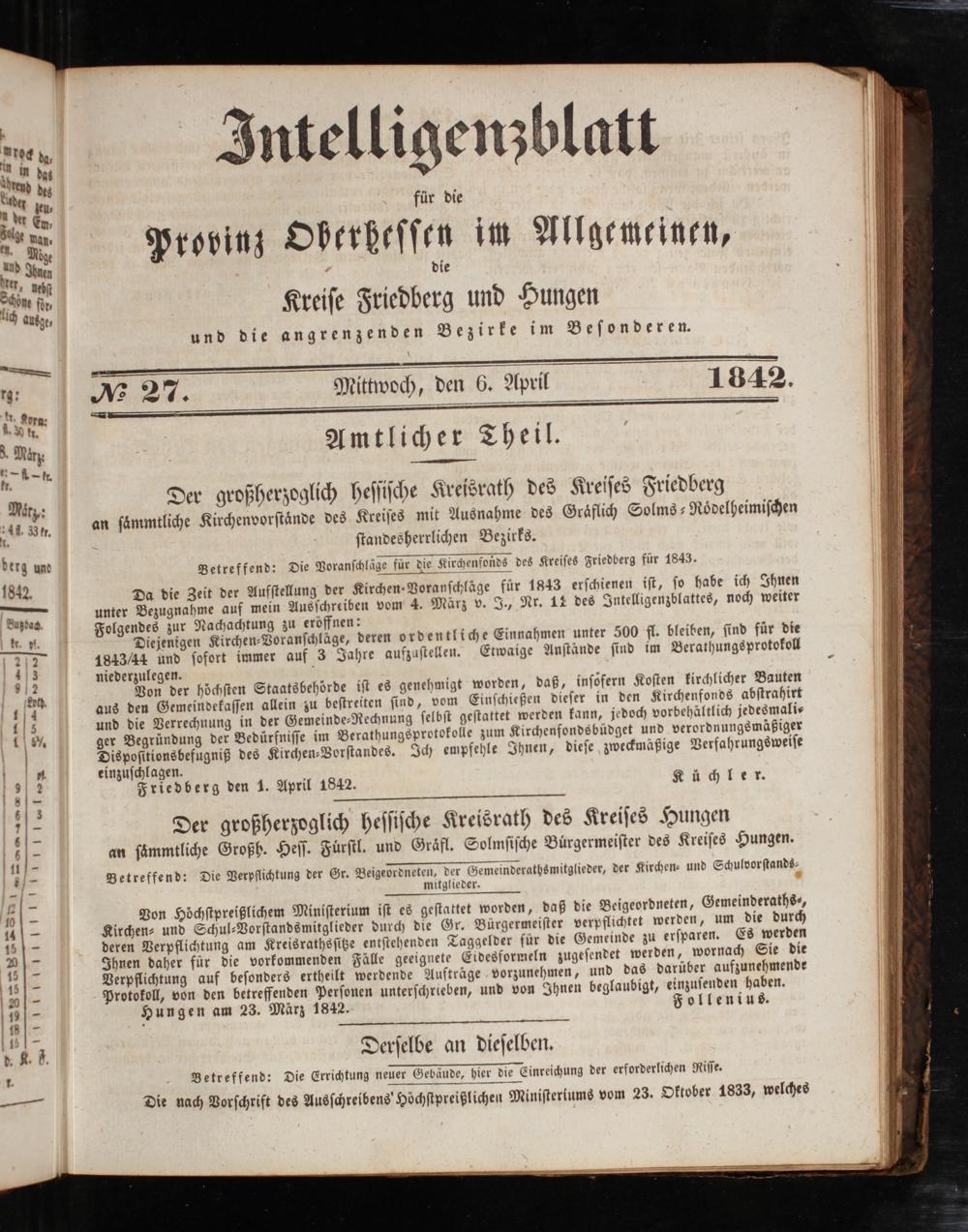 Intelligenzblatt für die Provinz Oberhessen. 1834-1834