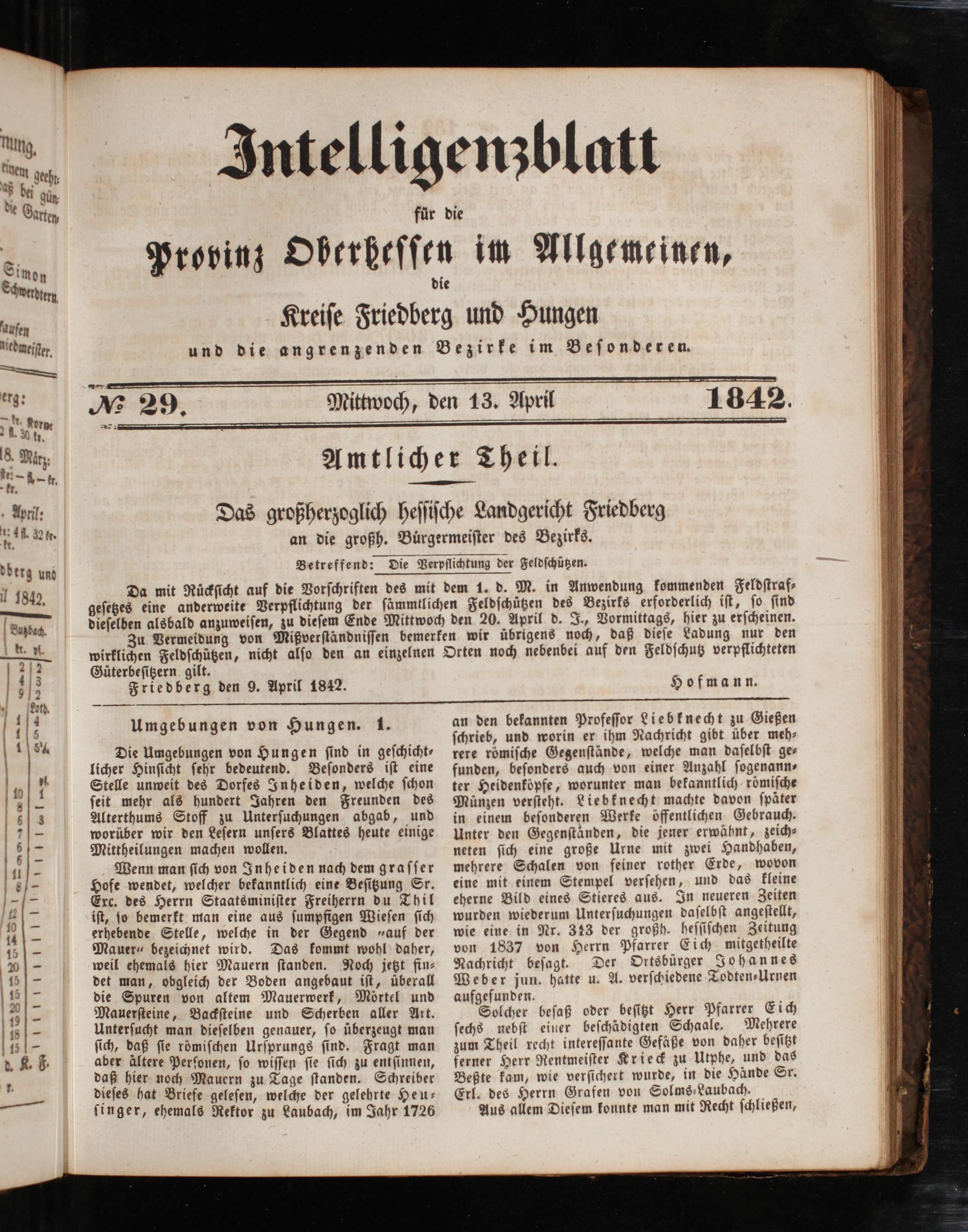 Intelligenzblatt für die Provinz Oberhessen. 1834-1834