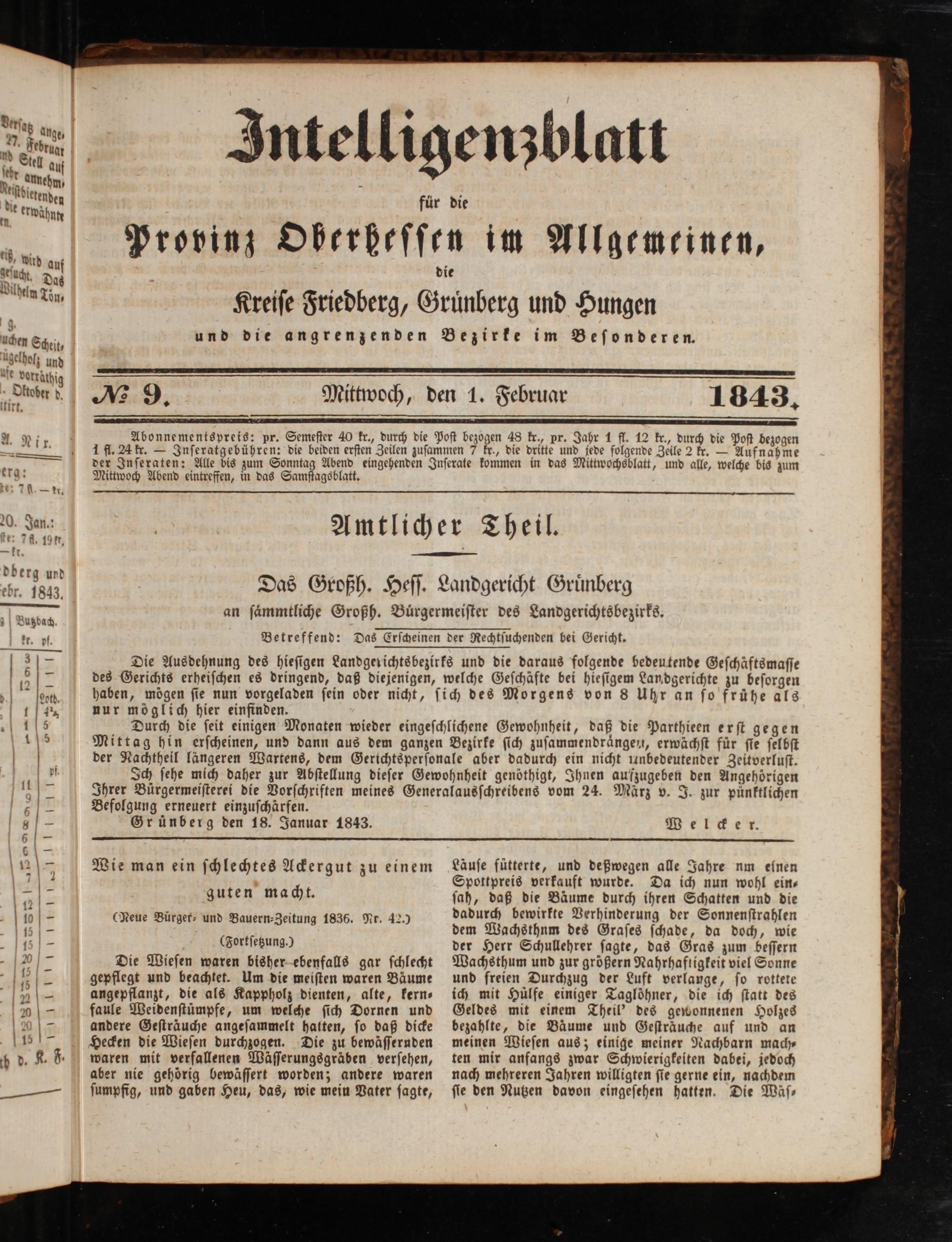 Intelligenzblatt für die Provinz Oberhessen. 1834-1834