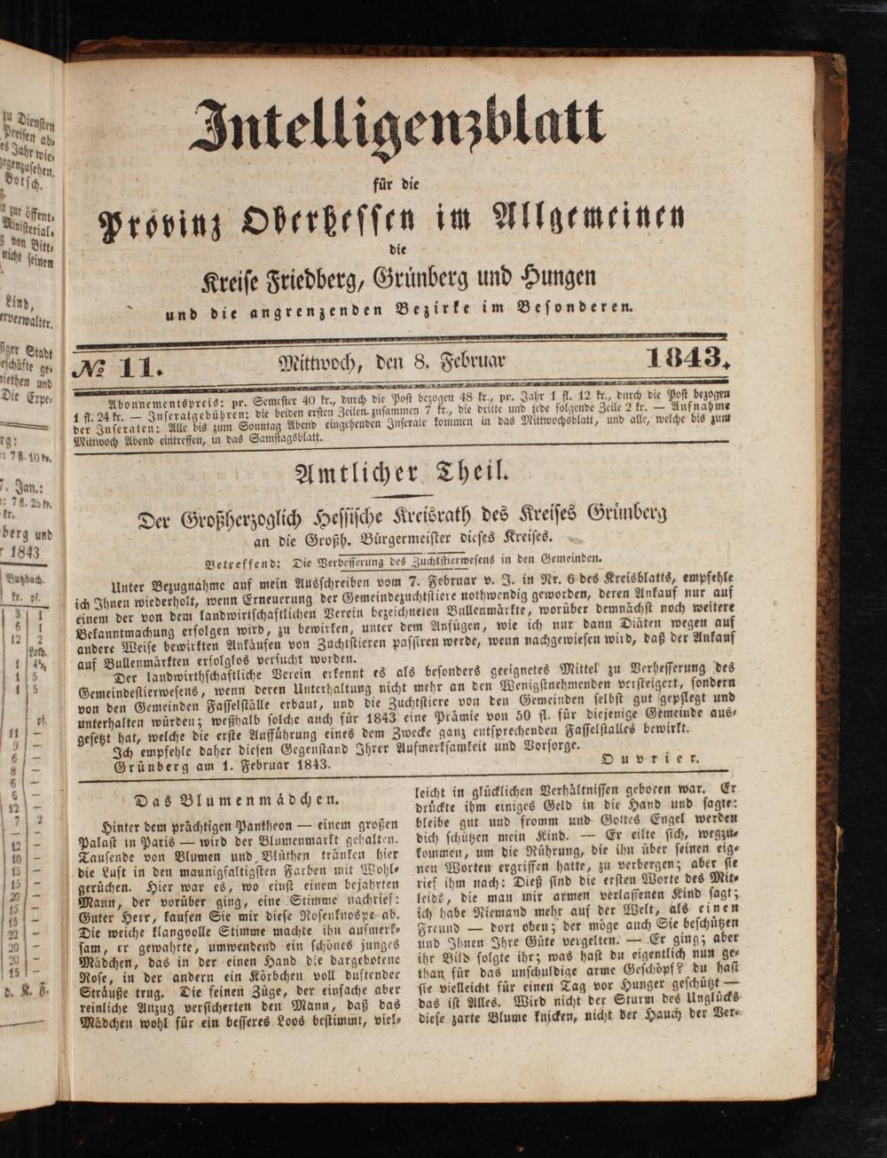 Intelligenzblatt für die Provinz Oberhessen. 1834-1834