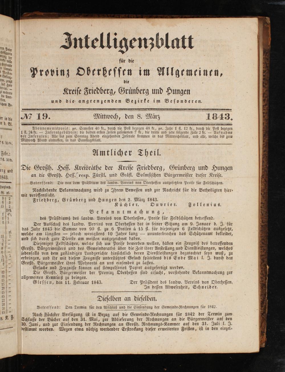Intelligenzblatt für die Provinz Oberhessen. 1834-1834