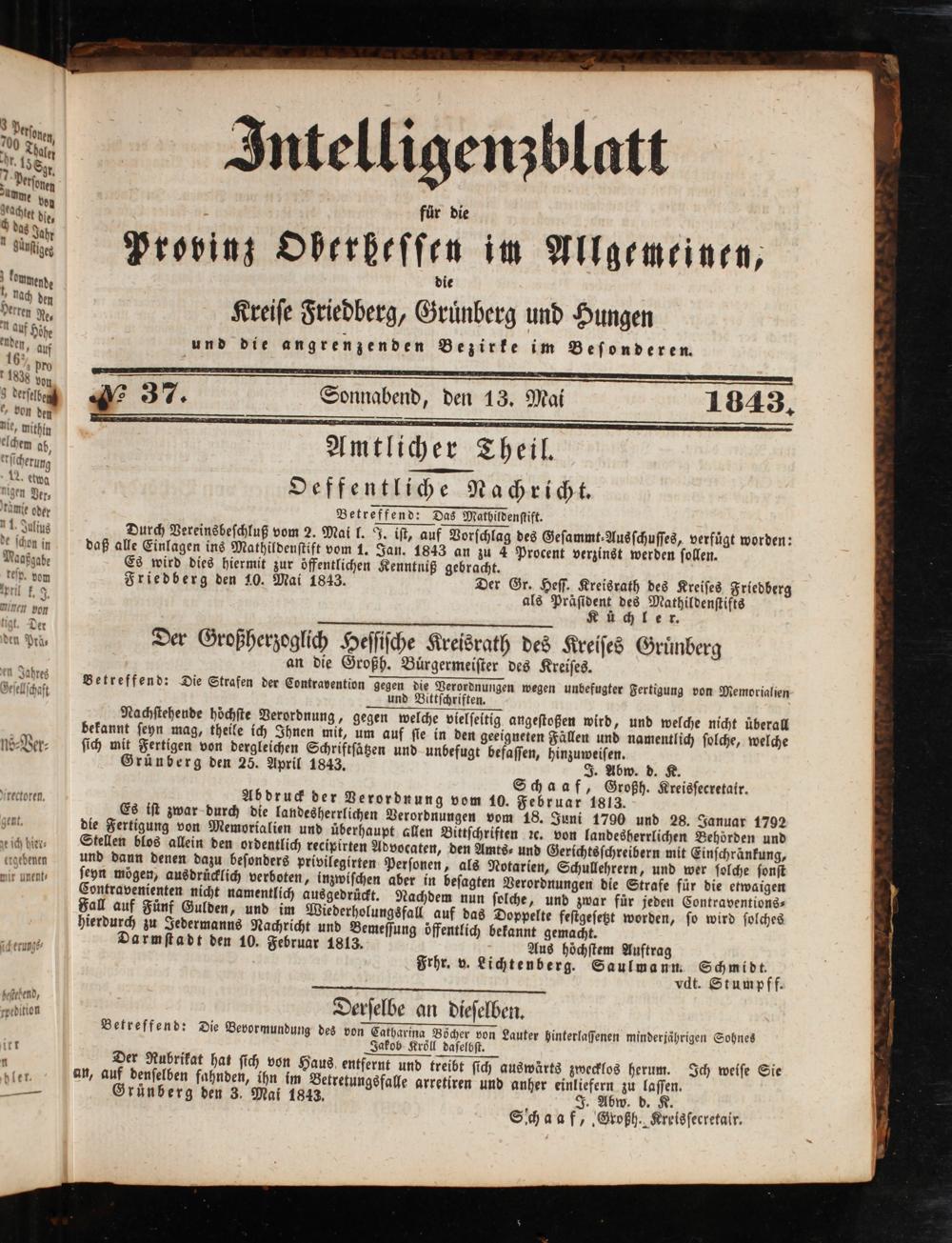 Intelligenzblatt für die Provinz Oberhessen. 1834-1834