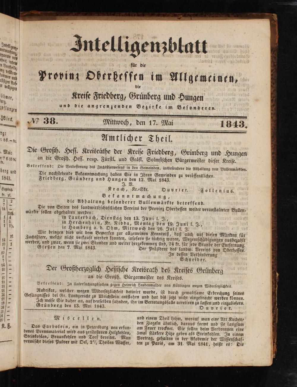 Intelligenzblatt für die Provinz Oberhessen. 1834-1834