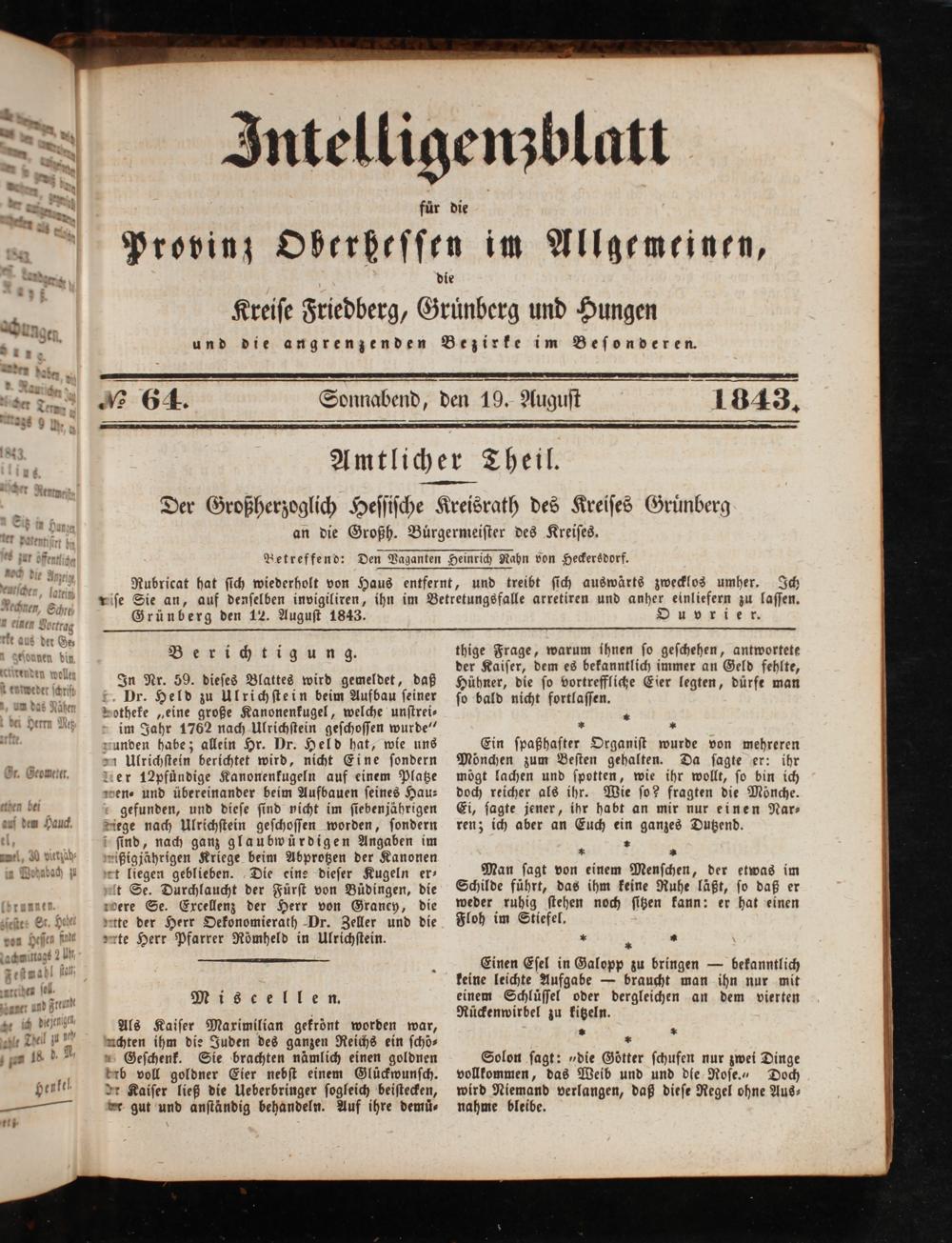 Intelligenzblatt für die Provinz Oberhessen. 1834-1834
