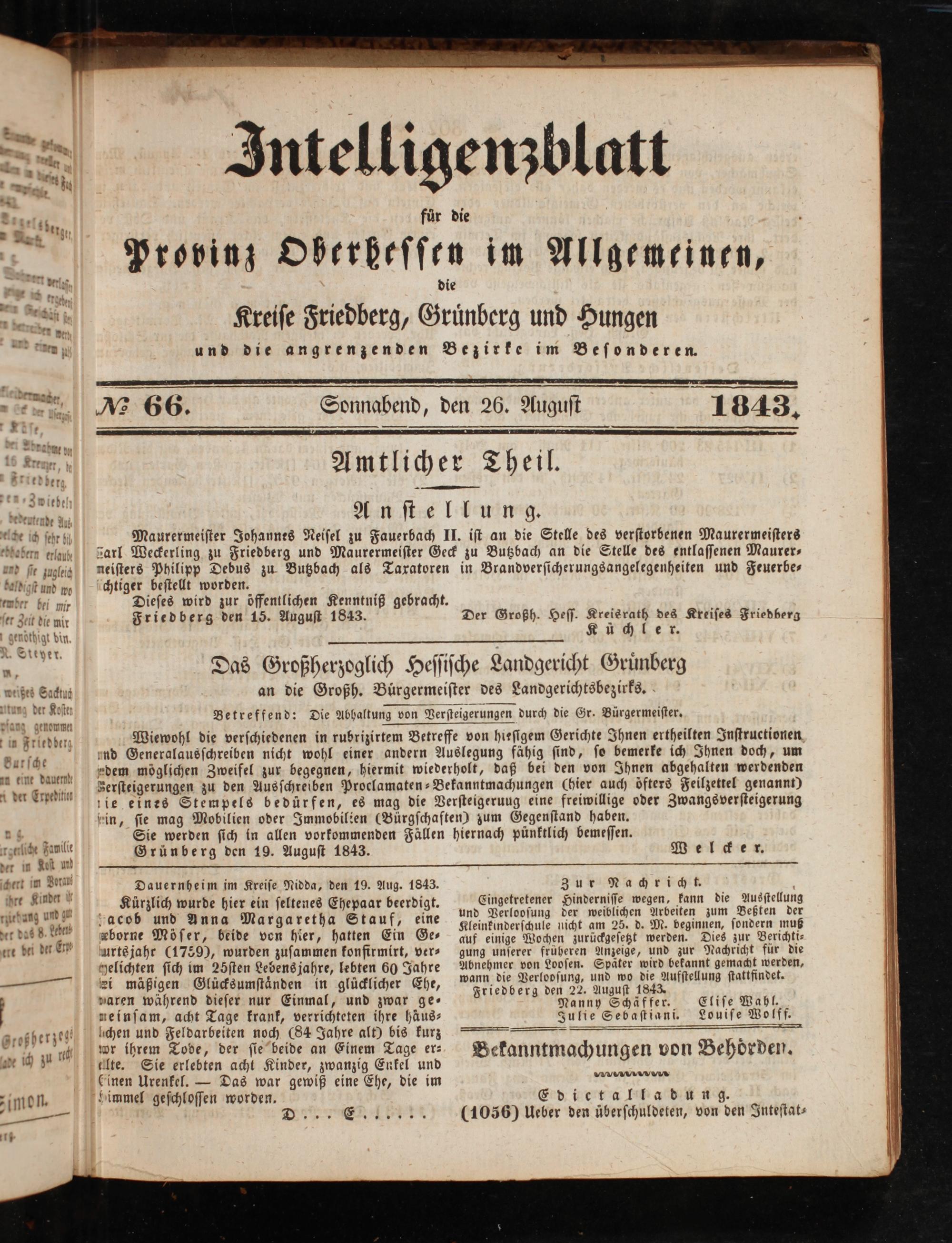 Intelligenzblatt für die Provinz Oberhessen. 1834-1834