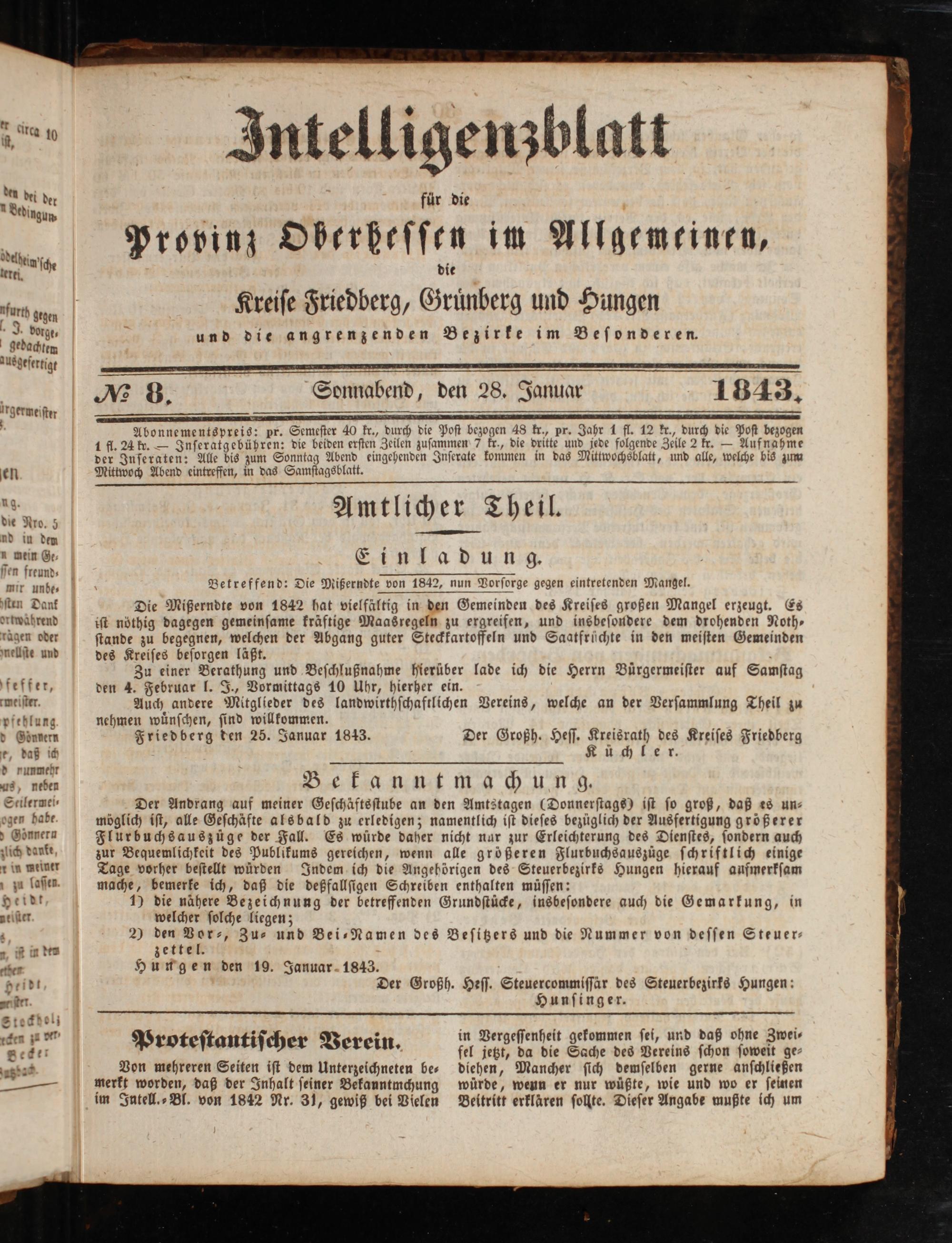 Intelligenzblatt für die Provinz Oberhessen. 1834-1834